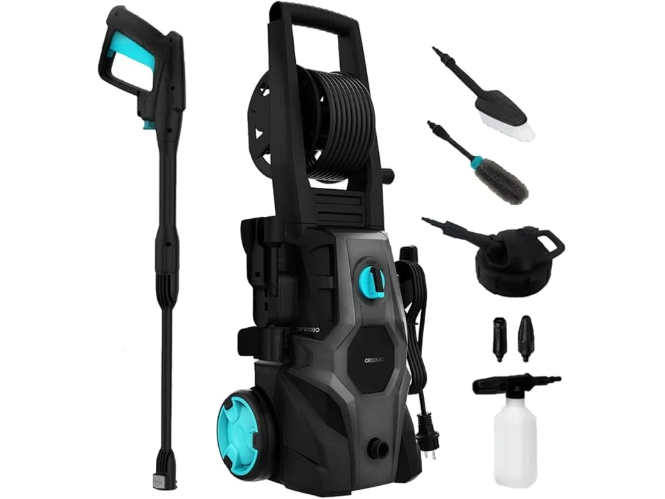 Lichte gebruikssporen, getest en werkend, ok, 1 sproeikop ontbreekt, beschadigde verpakking, Cecotec HydroBoost 2000 Car&Garden Pro Hogedrukreiniger, 2000 W, huis, tuin of auto, debiet 450 l/u, 150 bar druk, aluminium pomp, actieradius 14 m, B0BQ1SRVWP
