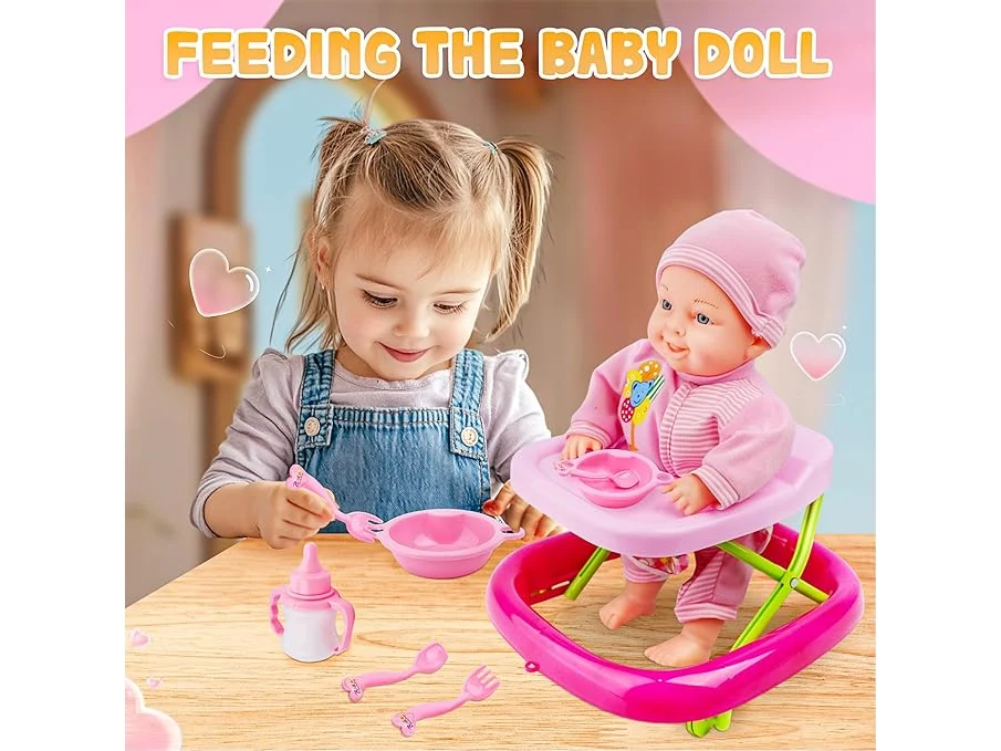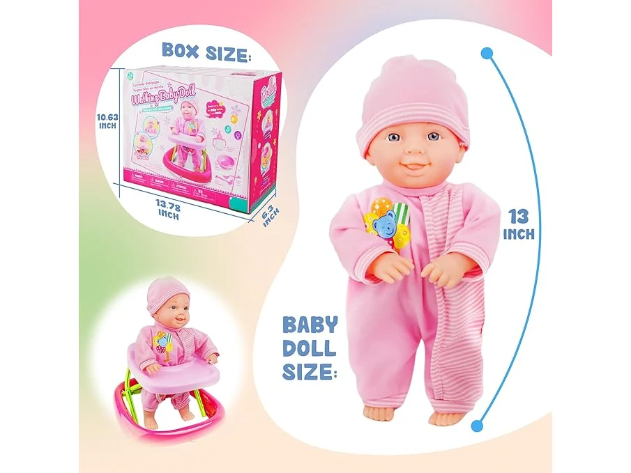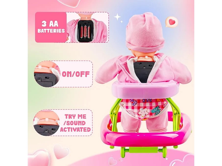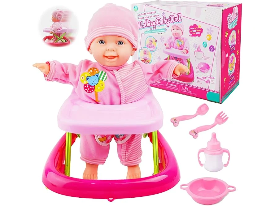 Ongeopend, in seal, Pop- en loopset, lerende babypoppen, zacht lichaam, beweegbare en lopende pop, babypop met loopwagen en accessoires, B0DBT2RKPD