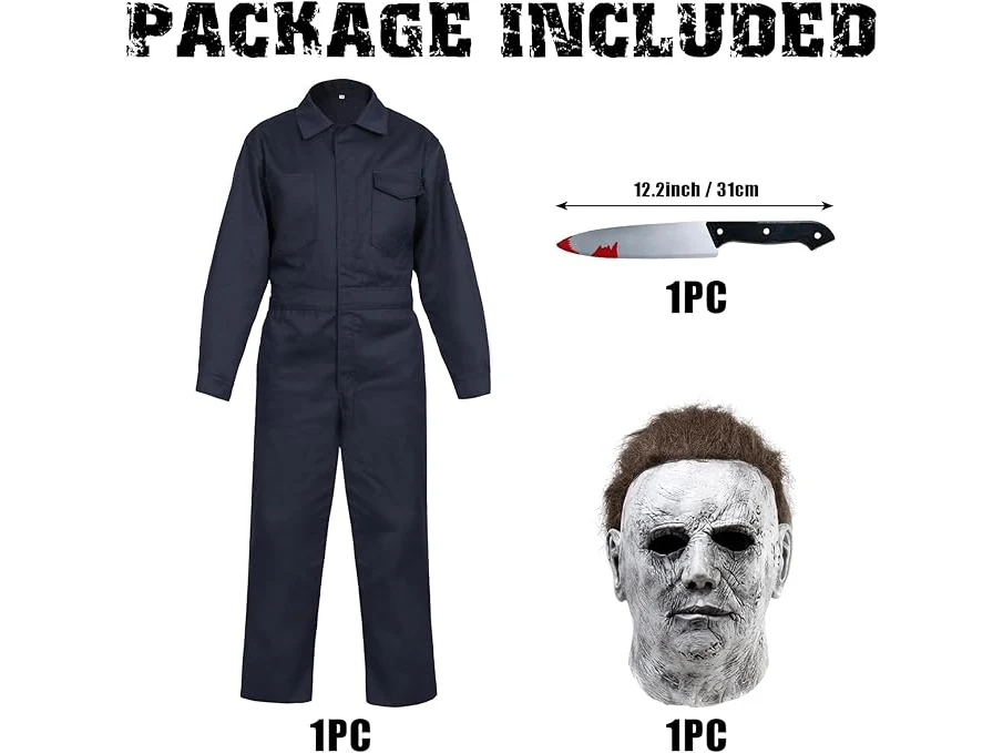 Ongebruikt, volledig, ok, Suffolly Michael Myers kostuum voor volwassenen, 3 stuks Michael Myers overall heren met Michael Myers Masker Outfits speelgoedmes, XL, B0D8VHW7G9