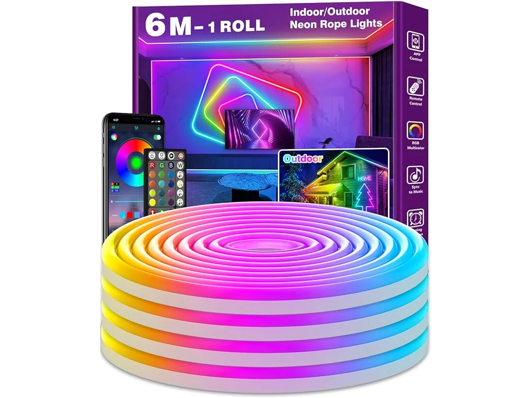 Minieme gebruikssporen, getest en werkend, ok, AILBTON 6 m neon LED-strip, flexibele neon LED-strip, bediening met app/afstandsbediening, meerdere modi, IP65 RGB-neonverlichting voor buiten, waterdicht, muzieksynchronisatie Gaming LED-neonstripverlichting voor slaapkamer, binnen, B0CCD6F7TW