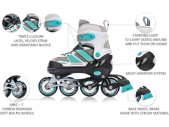 Ongebruikt, ok, maat 30-33, meteor® Inline Skates voor Kinderen Jeugd Volwassen - Ideaal voor Jongens en Meisjes - Instelbare Maat, B0B5H914H5