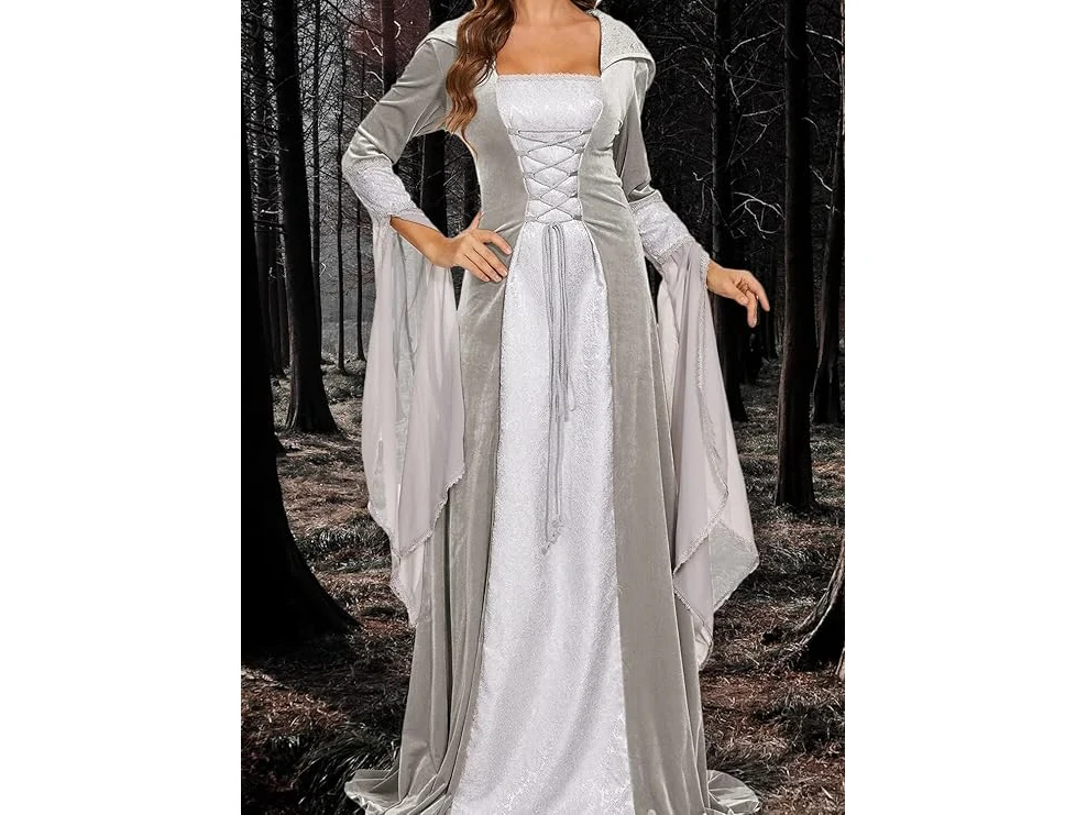 Ongeopend, ok, Halloween kostuum dames middeleeuws renaissance met capuchon kleding gothic jurk Victoriaans carnaval jurken cosplay kostuum, 2XL, B0CC2BGML5