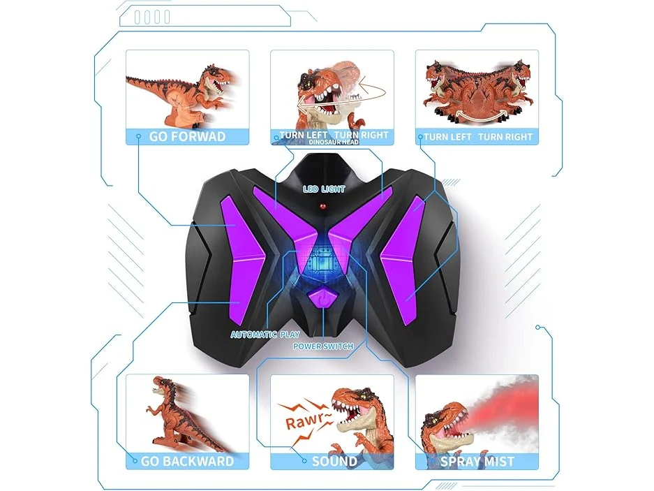Ongeopend, Op afstand bestuurbaar dinosaurusspeelgoed met spray voor kinderen van 3 tot 5, elektrische realistische RC T-Rex met lichtgeluiden, stunt T-Rex , B0B7RNHNZQ