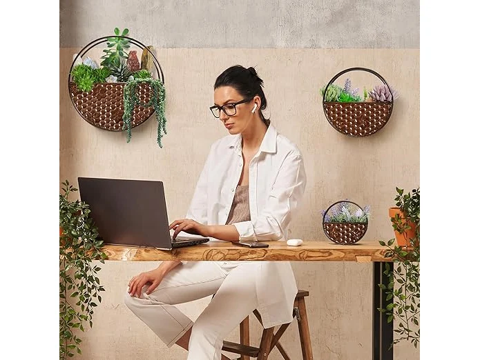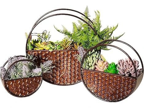 Ongeopend, set van 3 Ronde Brons Muur Bloempot, Vaas Metalen Planter, Indoor Outdoor K349B01 , B0CJXQ7T2N