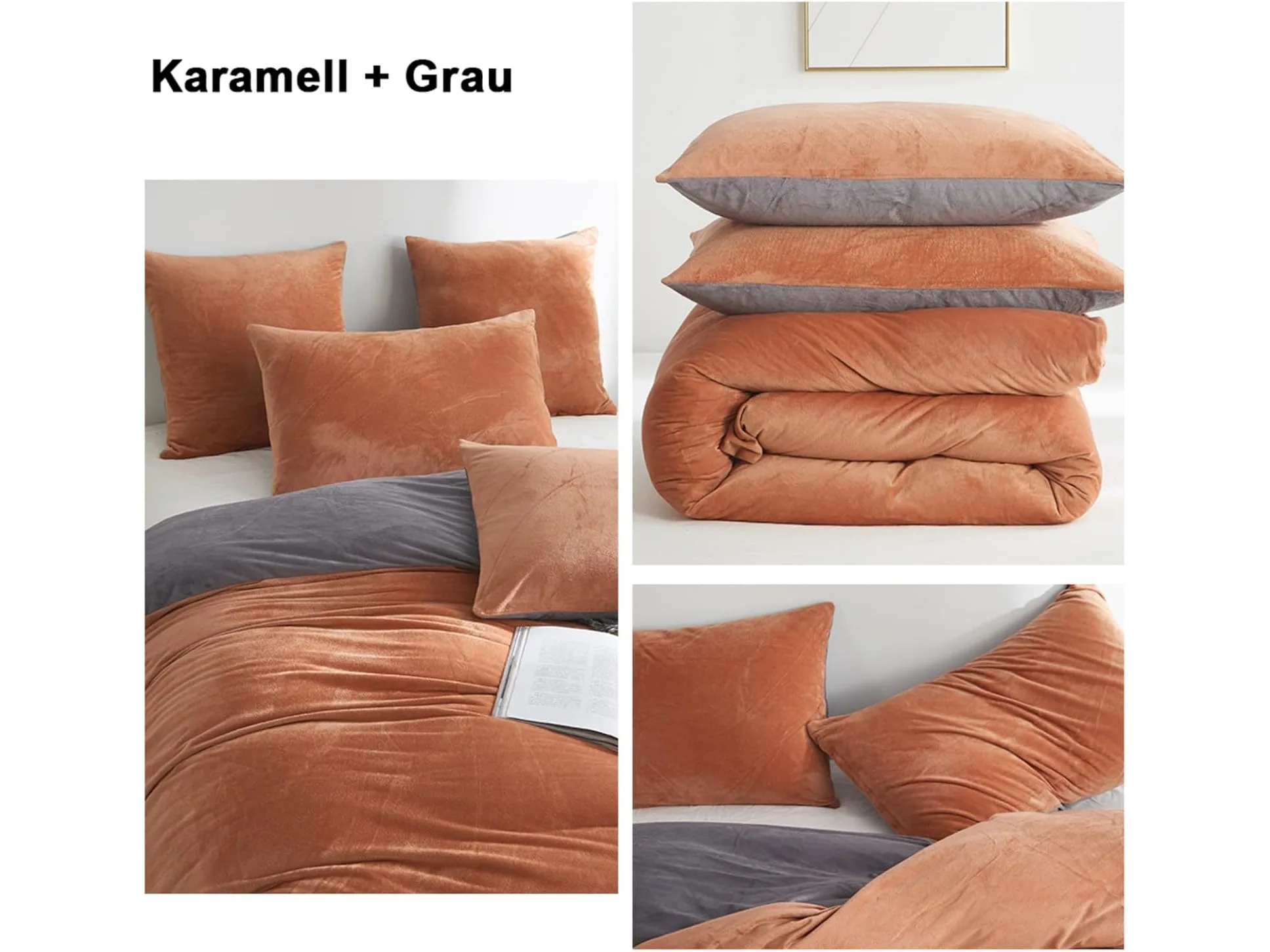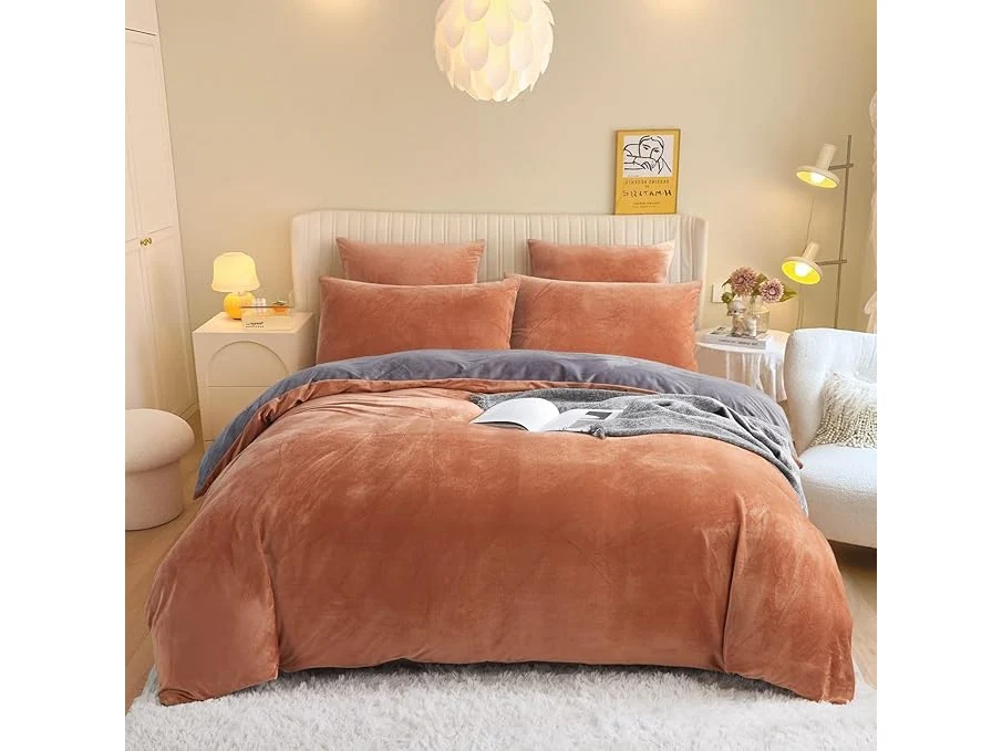 Minieme gebruikssporen, ok, Freyamy Winter Fluffy Coral Fleece Beddengoed 135 x 200 cm 4-delig Karamelgrijs Flanel Warm Winter Beddengoed Fluweel Flanellen Kasjmier Touch Omkeerbaar Beddengoed met 2 Dekbedovertrekken en 2 kussenslopen, B0BHZB8Z7D