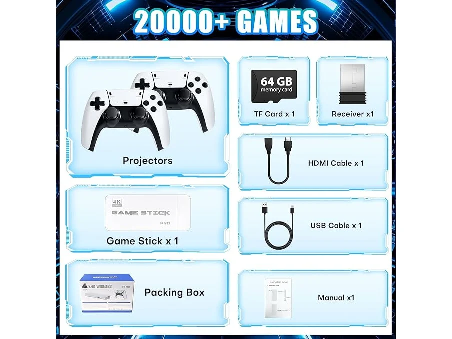 Ongeopend, in seal, Retro console gameconsole, retrolink game stick, 20.000+ games met 2 gamepads, HDMI plug & play retro console voor tv, spelcadeau voor jongens en volwassenen (X1 Pro+), B0FH6L17K3