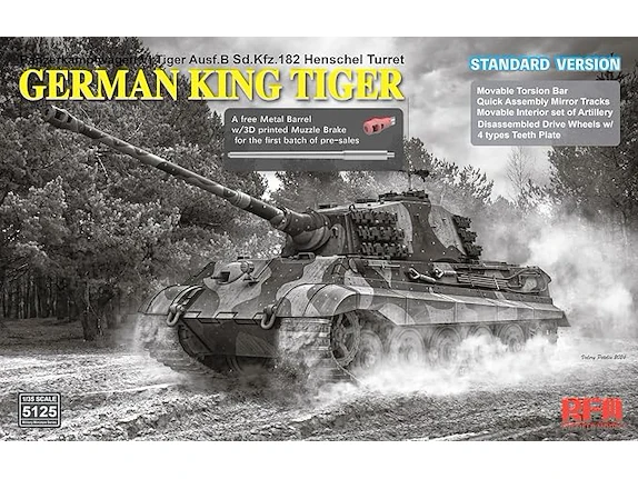 Ongeopend, ok, RYE-VELDMODEL - Model Duitse Char King Tiger Panzerkampfwagen VI Tiger Ausf.b Sd.kfz. 182 Henschel-koepel standaardversie | Roggeveldmodel | 5125 | 1:35 Model Promo Char, B0DH4G1ZH5