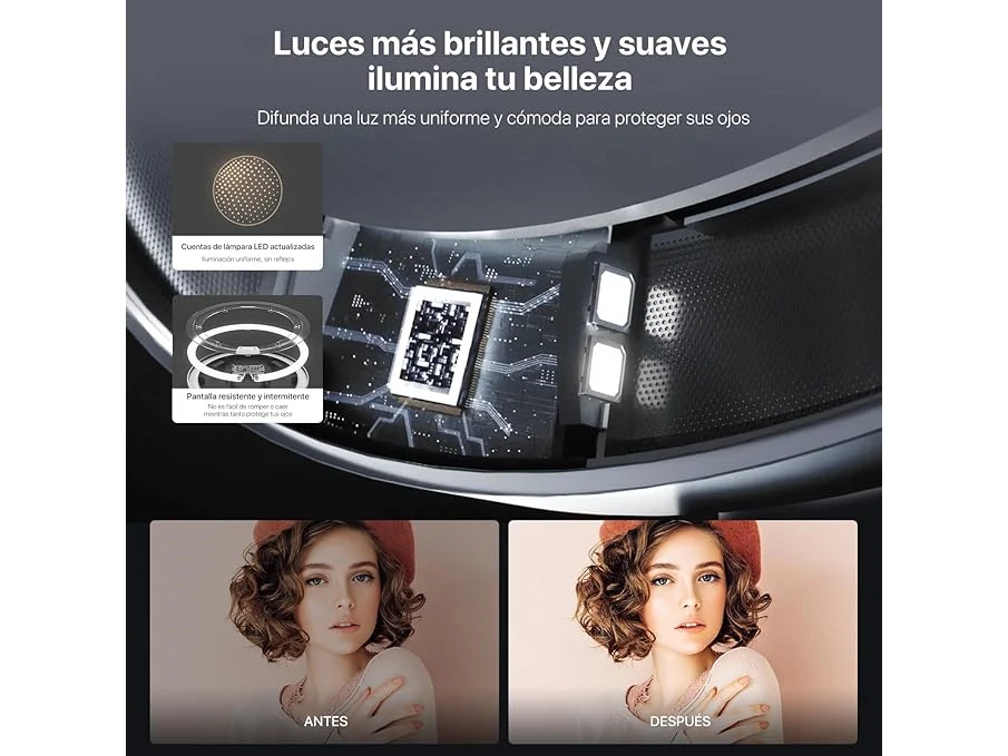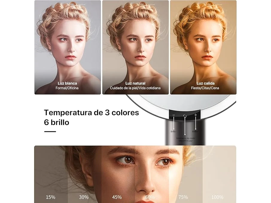Minieme gebruikssporen, getest en werkend, AMIRO Make-upspiegel van 9 inch met verlichting, smart sensor en touch-bediening, 3 kleuren en 6 helderheidsniveaus, geheugenfunctie, vrije rotatie, zwart, B0B4VHYGZC