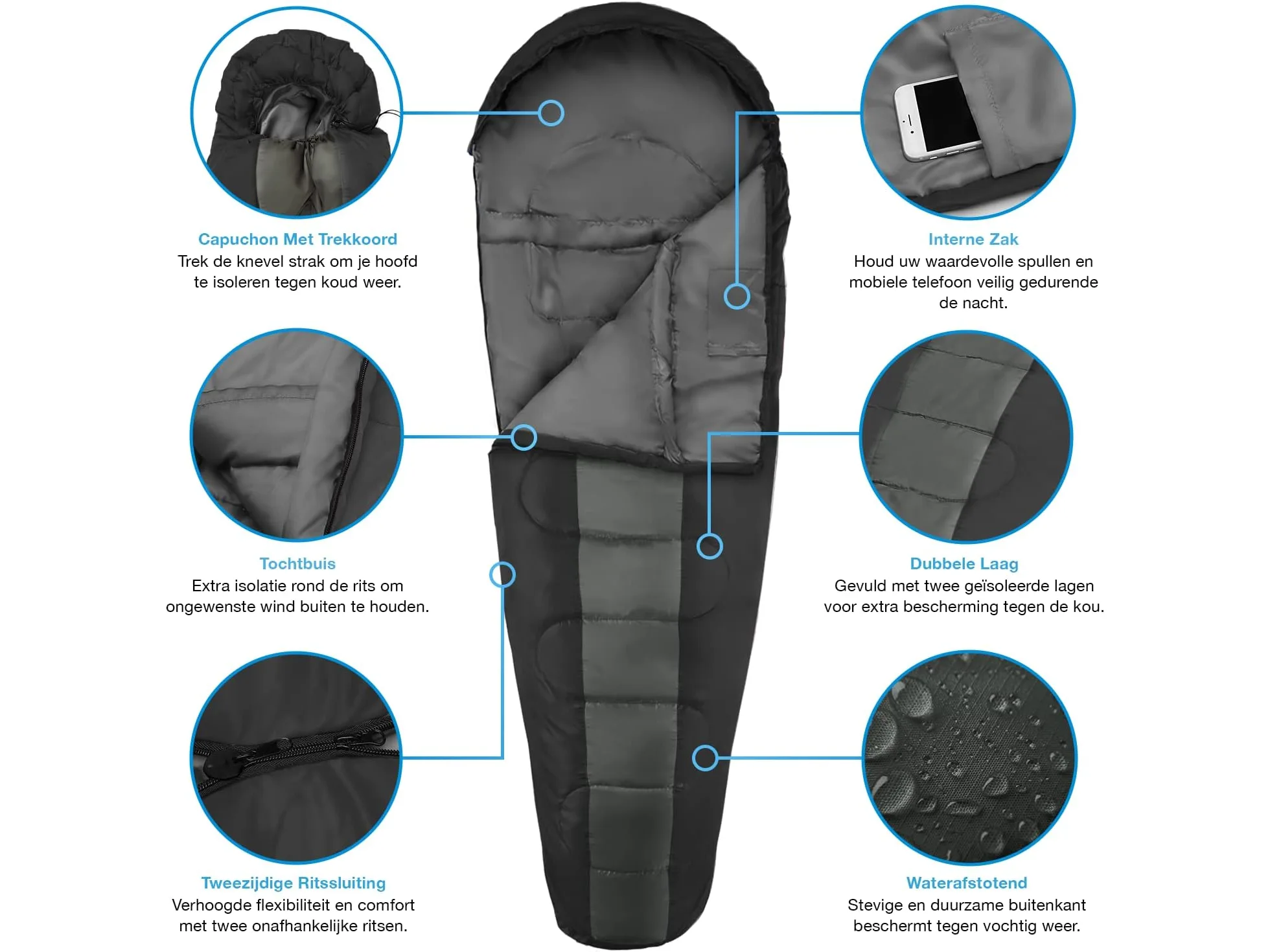 Minieme gebruikssporen, ok, Active Era Professional Premium Mummie Winter Slaapzak – 300 GSM Vulling en Waterafstotend met Binnenzak – 4 Seizoenen voor Camping, Backpacken, Hiken, Festivals, Logeren, Buitenhuis – 220x80cm, B0BLSRM9PL