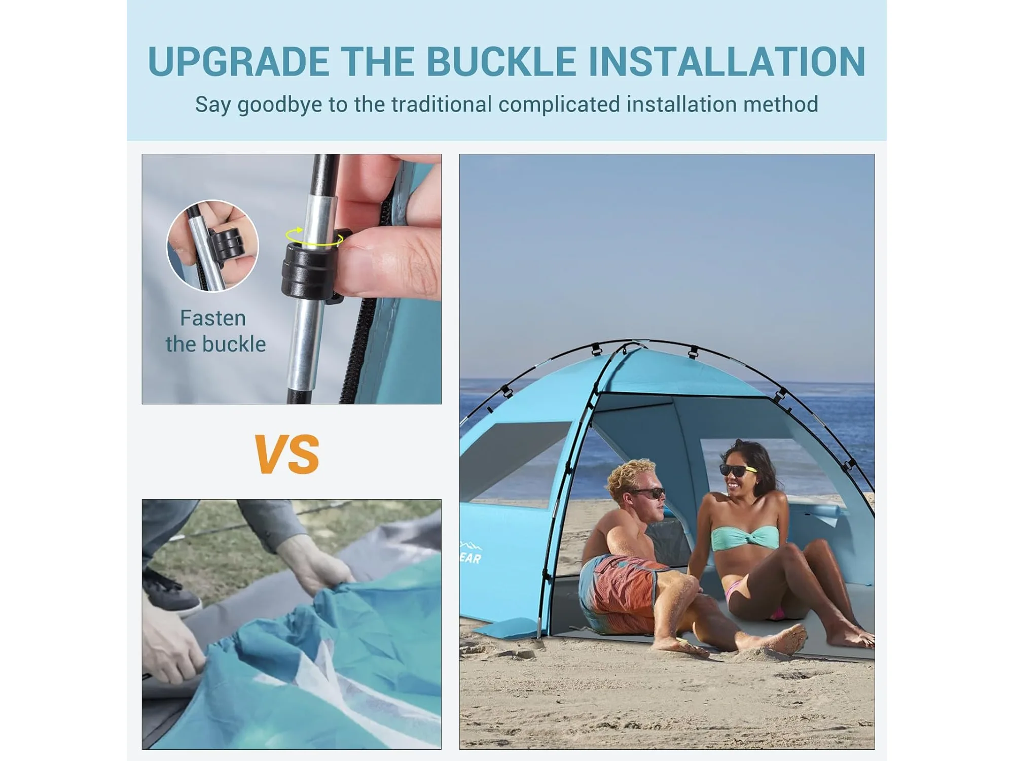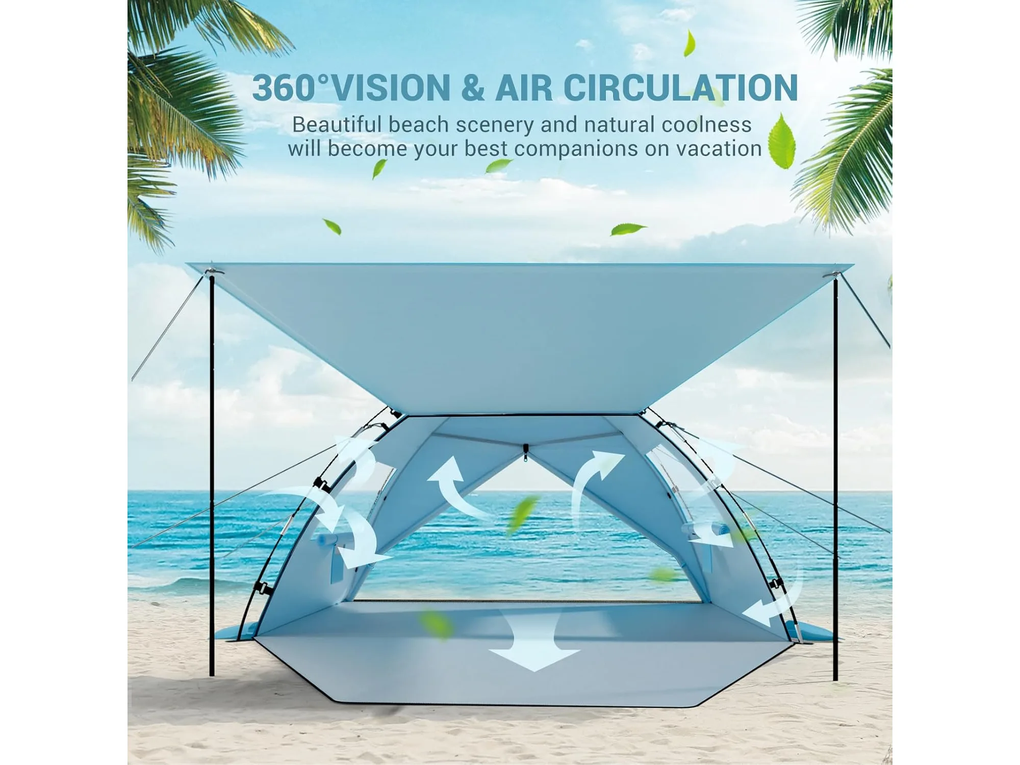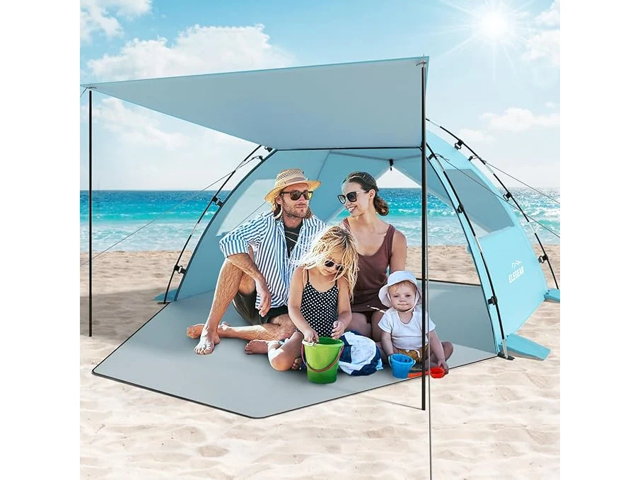 Minieme gebruikssporen, volledig, ok, Elegear Strandtent voor 4-5 personen, met uitbreidbare zonnekap Beach Tent UPF 50+ met 2 ramen, achterdeur met Ritssluiting, Draagbare Strandtent voor Familie, Zonbescherming Strand, B0CRD2WRM4