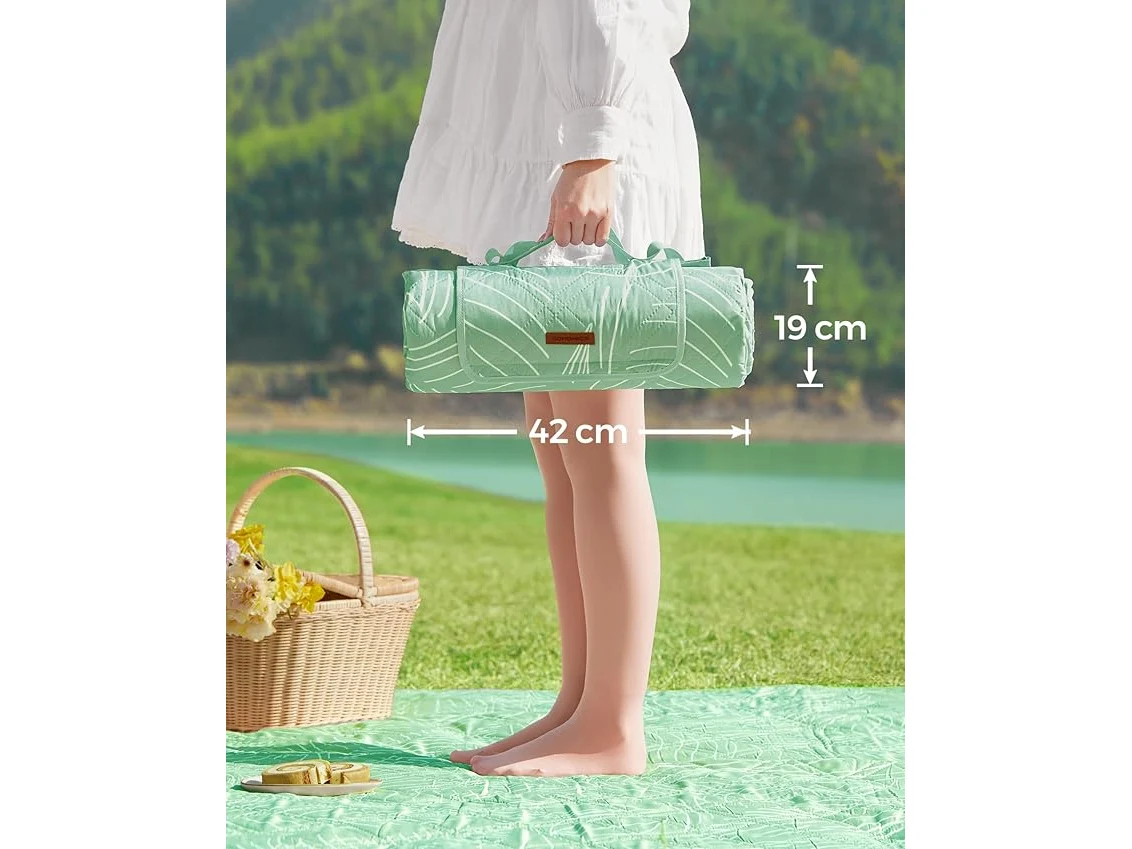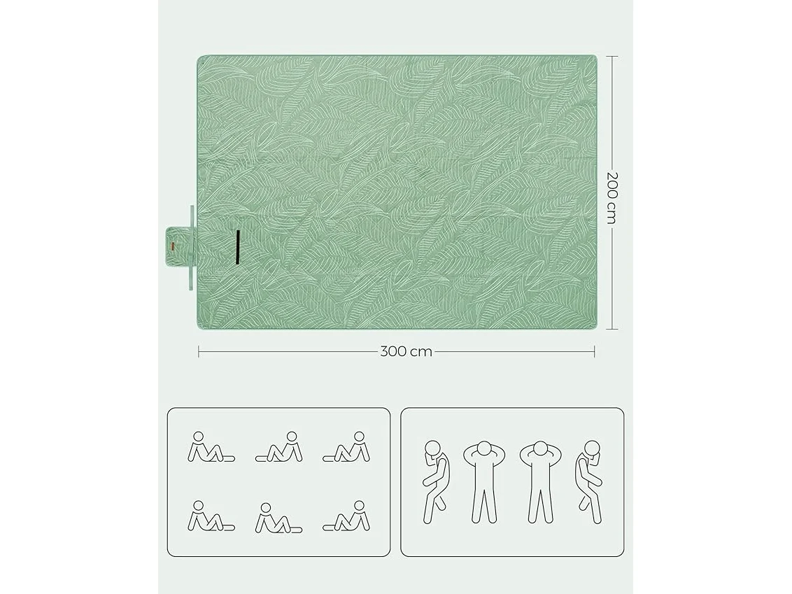 Ongebruikt, ok, SONGMICS picknickdeken, 300 x 200 cm, grote kampeerdeken, voor park, tuin, strand, waterdicht, machinewasbaar, opvouwbaar, mintgroen met tropische varen GCM310C03,B0CJHWGKFF