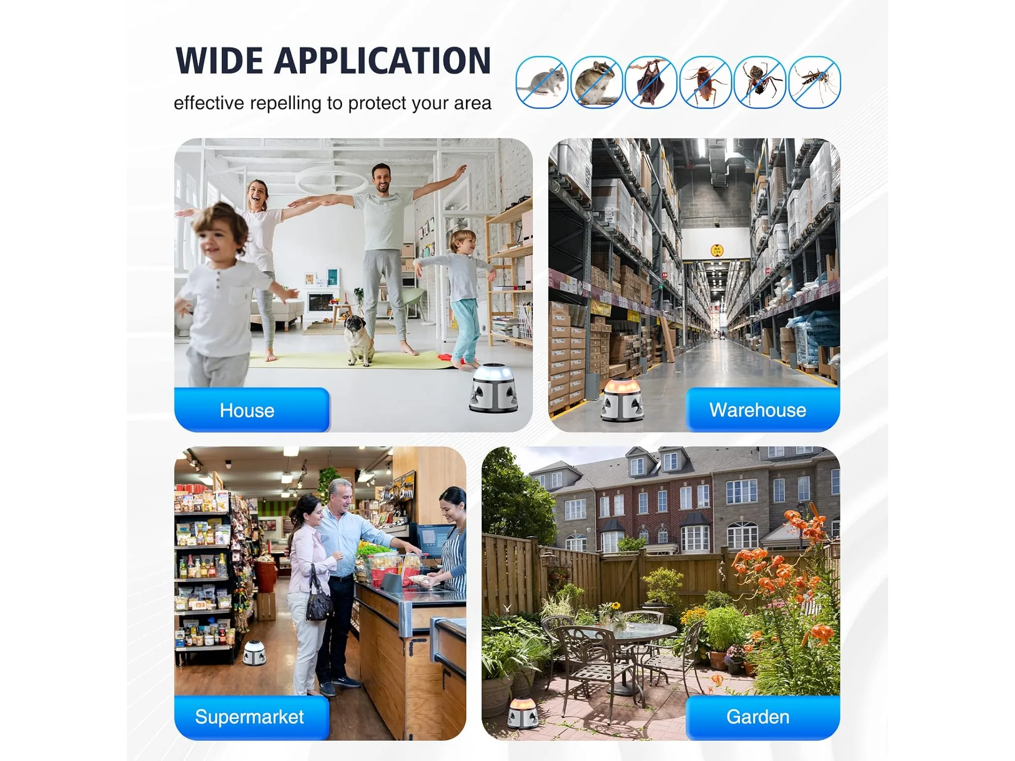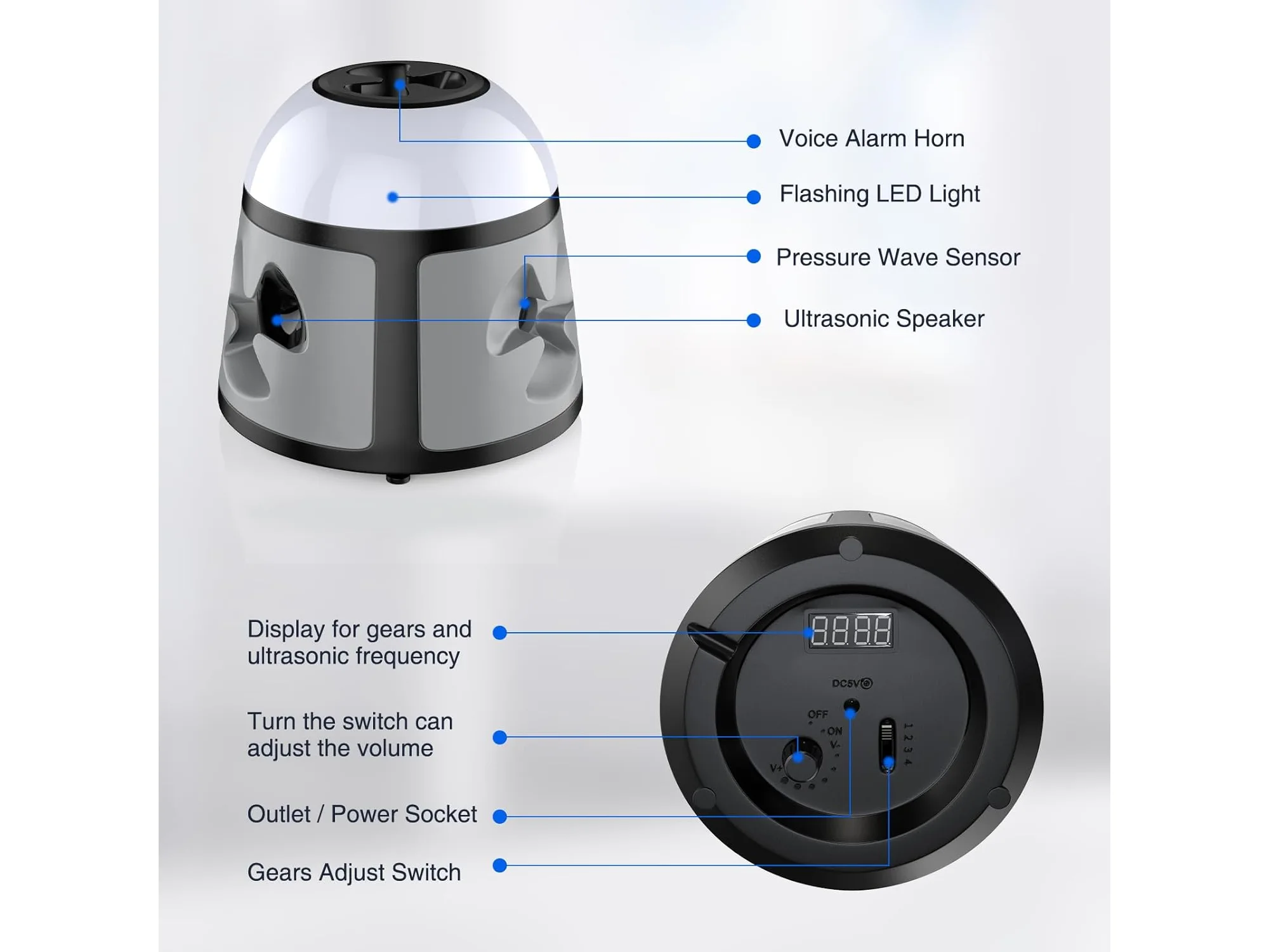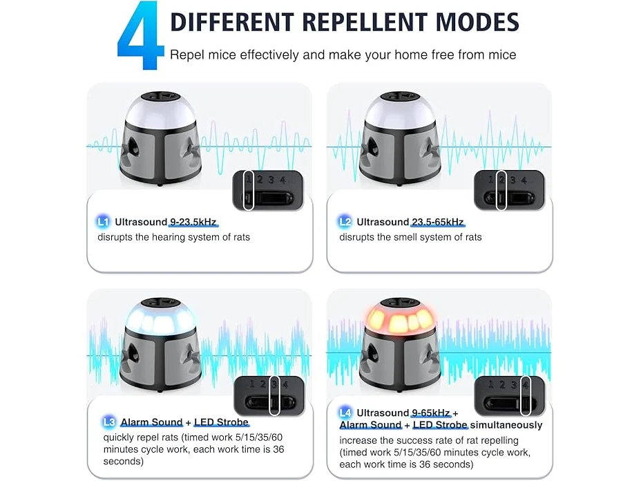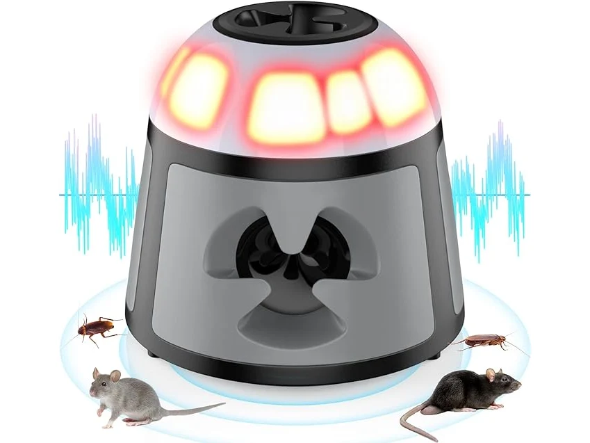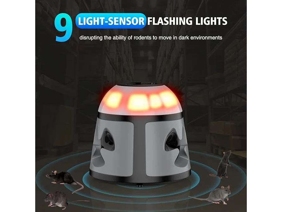 Ongebruikt, getest en werkend, ok, TipTop Home Ultrasone dierenverjager, 360° muizenverjager, frequentie regelbaar, muizenafweer, steekbaar, ongedierteafweer, rattenafschrikking, voor binnen, rattenafschrikking, met led-stroboscooplicht, B0D7DQY1RC