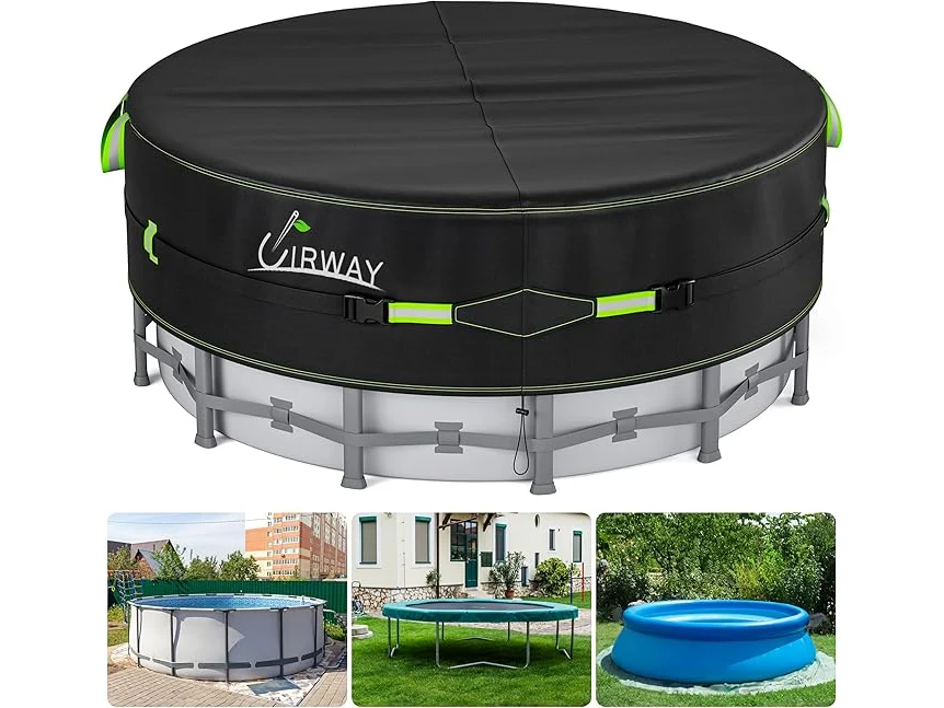 Ongeopend, ok, UIRWAY 12 ft rond zwembadafdekking, bovengronds zwembad winterhoes met zwembadaccessoires, 420D zeil, ideaal voor waterdicht en stofdicht,B0CQS8M33T