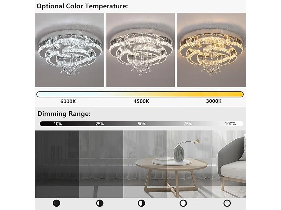 Ongeopend, in seal, Vinilky Kroonluchter kristal met afstandsbediening, dimbare kristallen kroonluchter moderne vlakke LED-verlichting chroom plafondlamp voor woonkamer, eetkamer, slaapkamer, keuken, entree, hal, B0DP2TP2BY