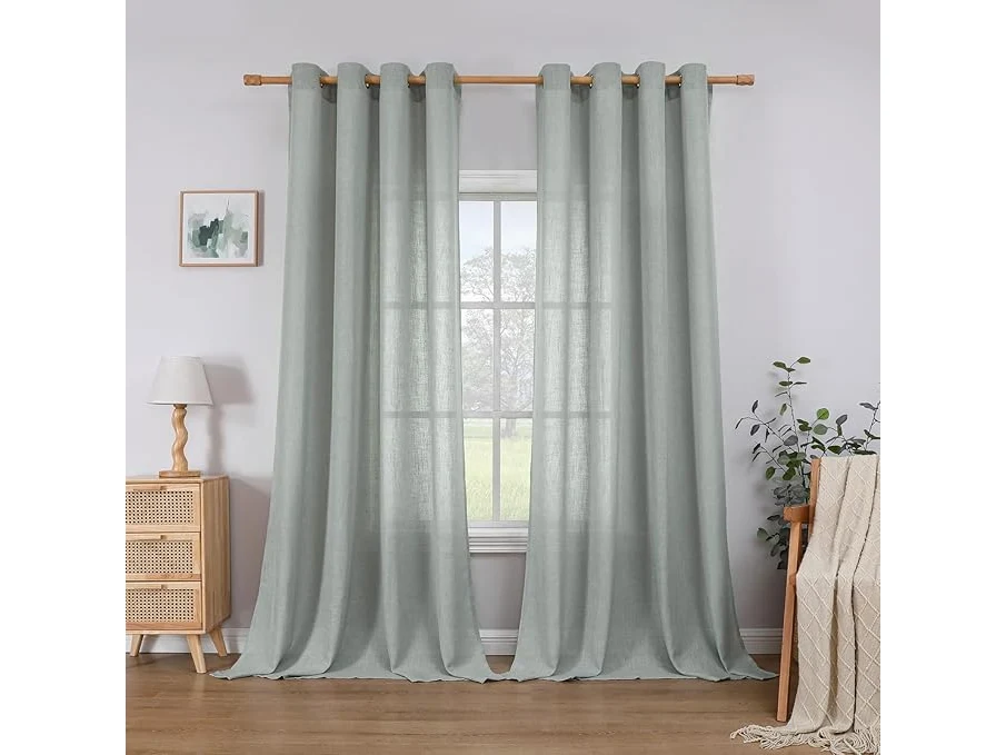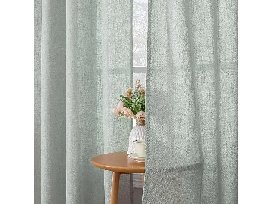 Ongeopend, in seal, CUCRAF Linnen gordijnen met oogjes landhuisstijl voile gordijn half-transparant gordijnen voor slaapkamer kinderkamer woonkamer, H 260 x B 140 cm, set van 2, saliegroen, B0CKDYW1VS