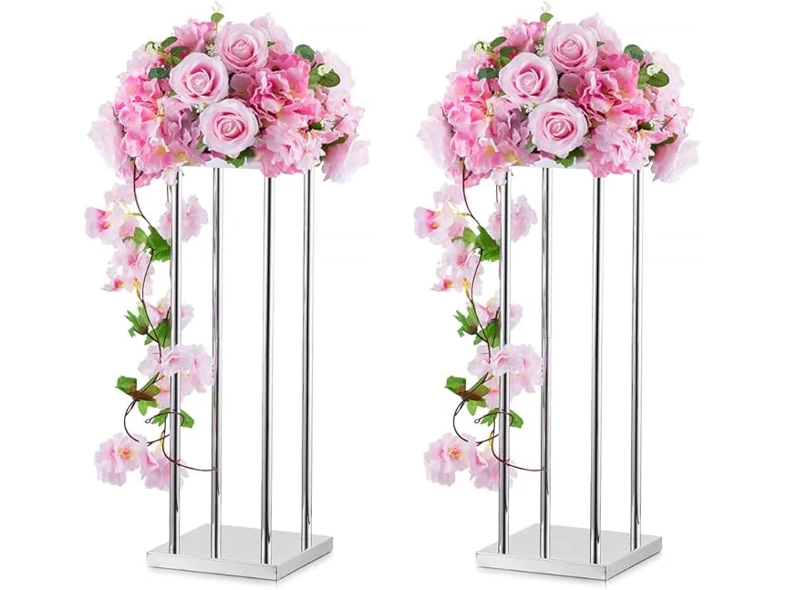 Ongebruikt, ok. Inweder Bloemenstandaard, bruiloft, tafeldecoratie, 2 stuks, zilveren bloemenvazen, 60 cm hoog, plantenstandaard, rek, vloervaas van metaal, 2 verdiepingen, bloemenstandaard voor feest, podium, B0B2ZSG1DV