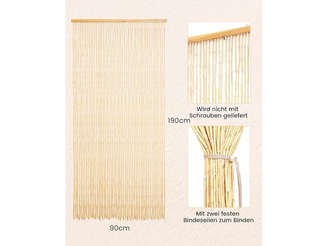 Ongebruikt, ok, Ezcasch Bamboegordijn, deurgordijn, 52 strengen, beige, retro, houten kralengordijn, handgemaakt, natuurlijk deurgordijn, draadgordijn als insectenbescherming, vliegenbescherming voor slaapkamer, B0CWLC3HVF