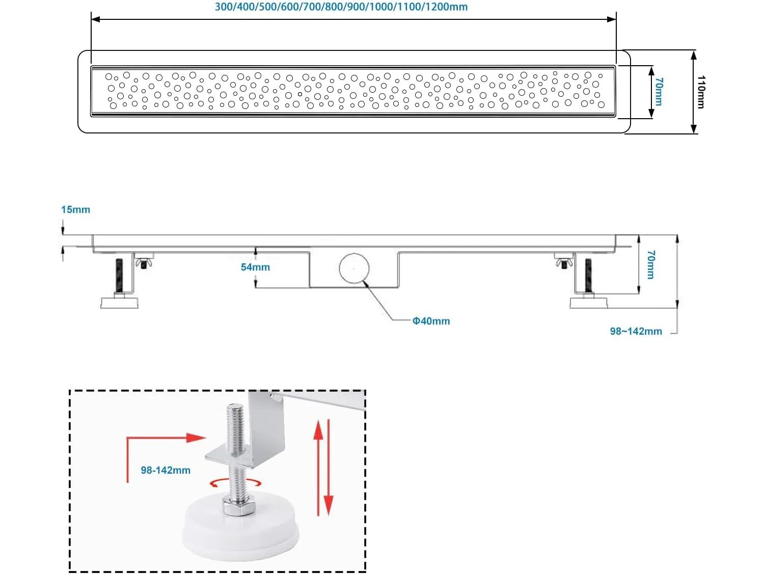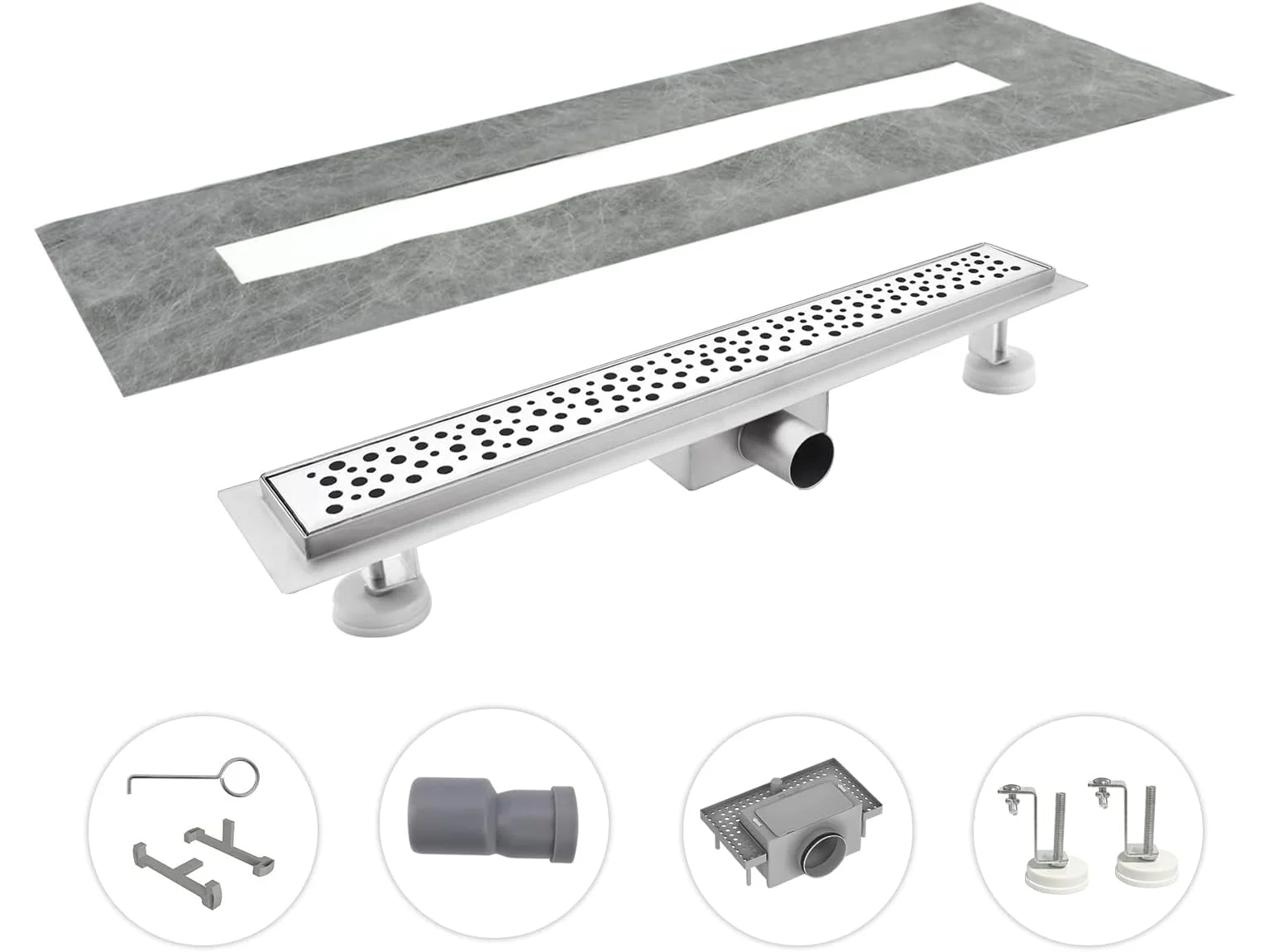 Ongeopend, sunrik Douchegoot 100 cm, extra vlak, roestvrijstalen vloerafvoer, complete set met sifon, B0B7J4Q99J