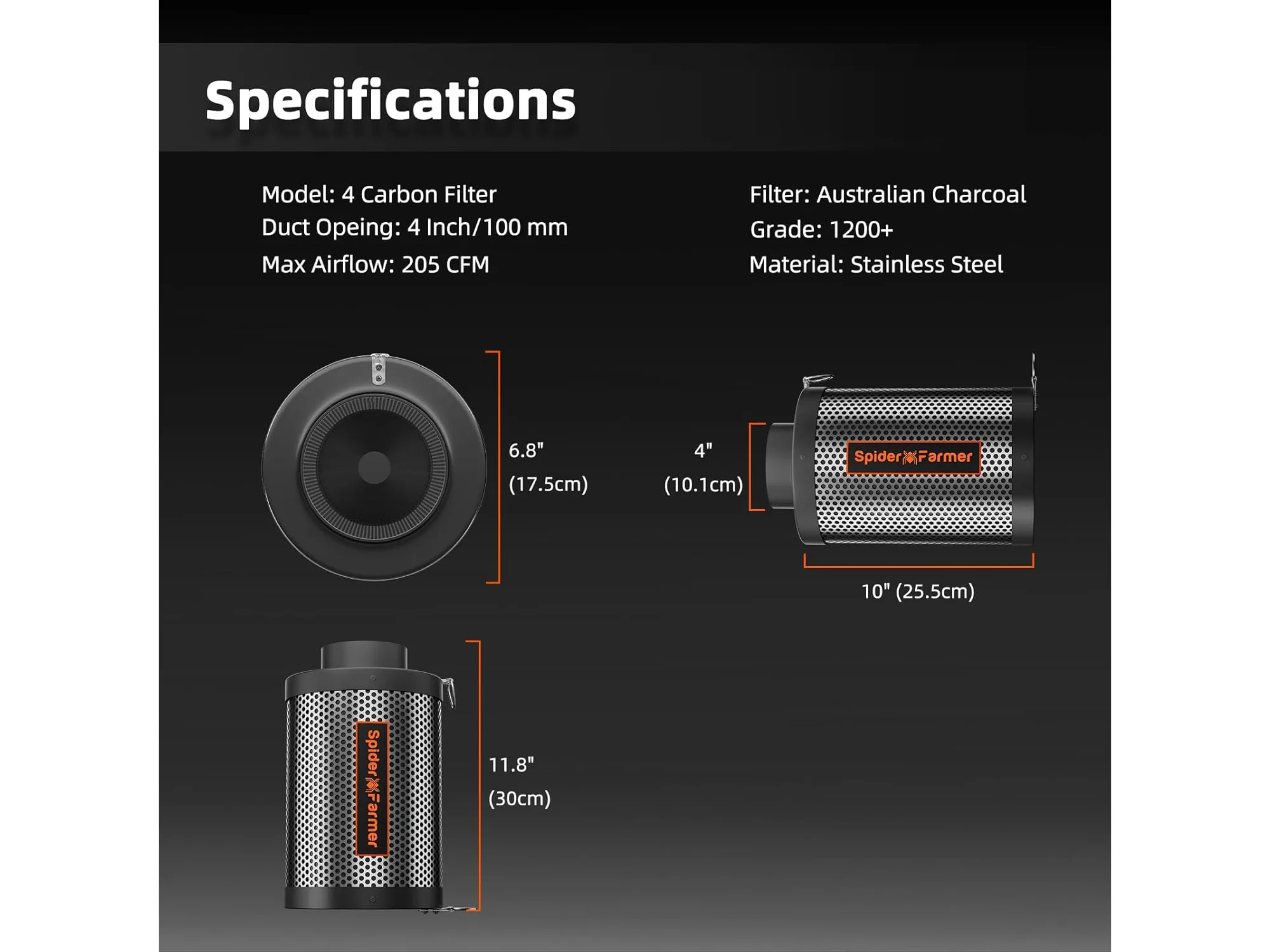 Ongebruikt, ok, SPIDER FARMER Koolstoffilter van 4 inch voor kweektent, luchtkoolstoffilter met premium Australië Virgin Charcoal voor kweektent, kweektenten, luchtfiltratie, hydrocultu, B09MTDFBPS