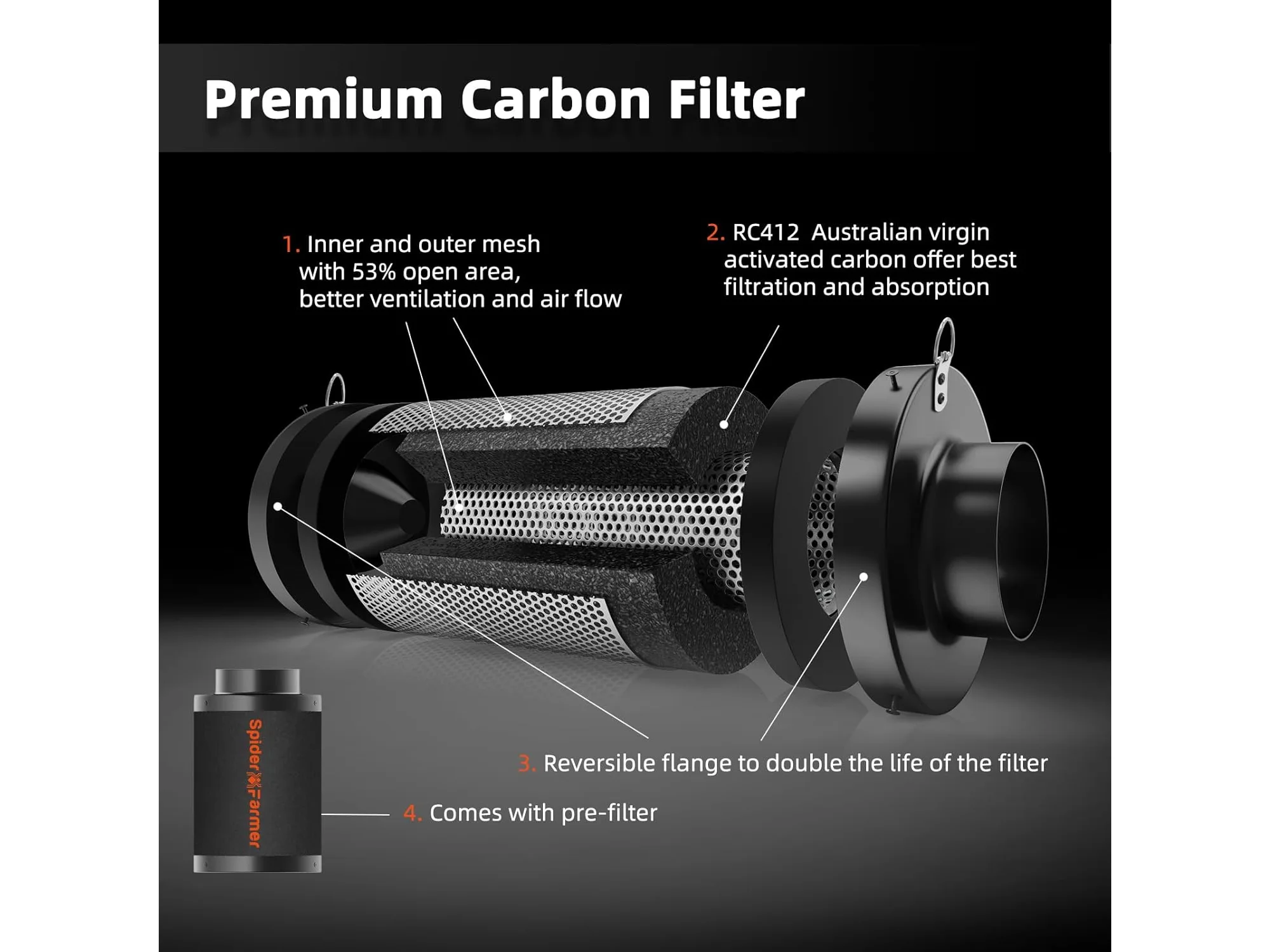 Spider farmer koolstoffilter