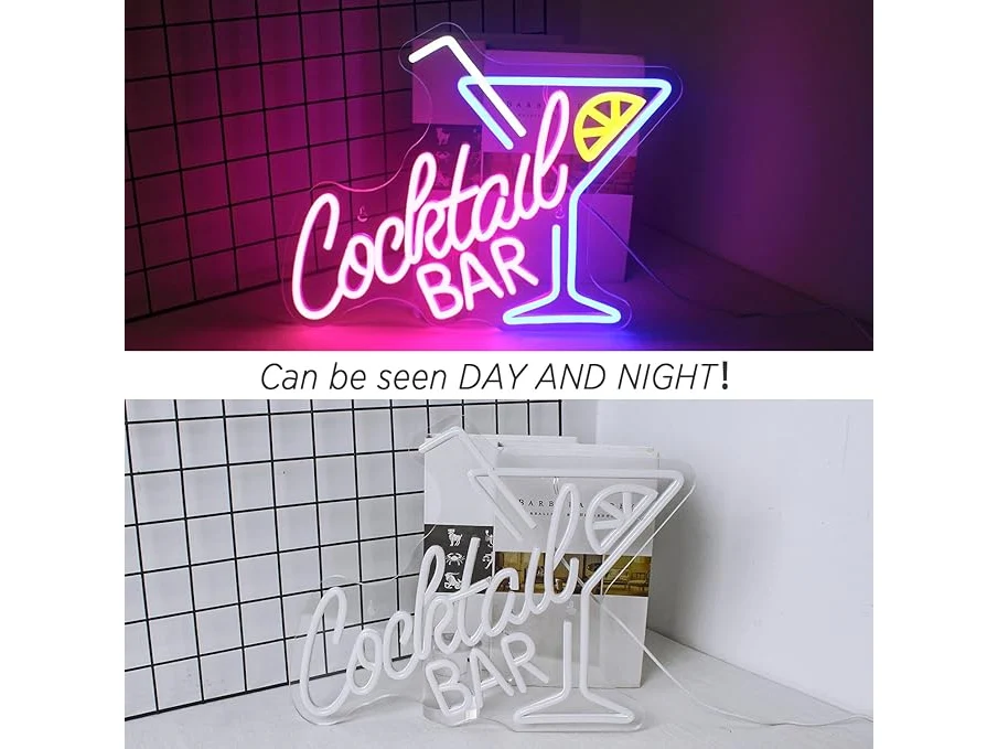 Ongebruikt, ok, werkt, Horseneon Neonbord voor cocktails, bar, neonbord, voor op de muur, blauw roze neonlicht voor pub, thuis, bier, bar, club, man, café, restaurant, winkel, cocktails, decoratie , B0CKR6QGP4