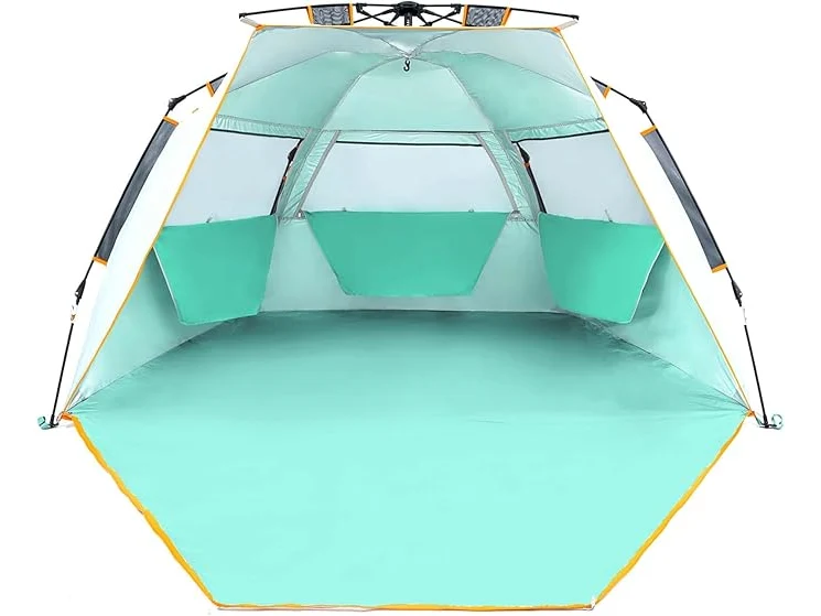 Ongebruikt, volledig, ok. WolfWise Easy Up strandtent voor 4-5 personen, UPF 50+, onmiddellijke beschutting, luifel, buitensportparaplu, zonnescherm tent met verlengde veranda met ritssluiting, draagbaar, groen, B0BPX1ZSFH