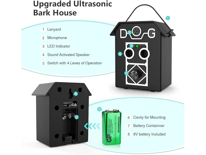 Ongebruikt, getest en werkend, ok, Bubbacare Anti-blaffend apparaat, automatisch ultrasoon anti-blaffend voor honden, huisdieren, zacht blaffend apparaat met 3 modi voor grote, middelgrote en kleine honden, voor binnen en buiten, B0BTT93LT9