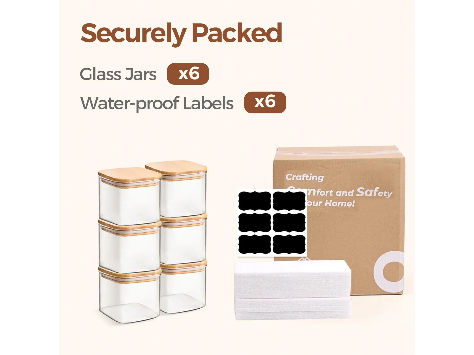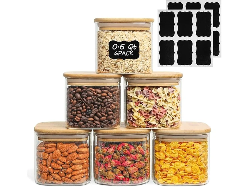 Ongebruikt, volledig, ok, ComSaf 0,6 Qt glazen voorraadpot (set van 6), doorzichtige opslagcontainers met luchtdichte deksels, voorraadpot, kruidenpot, Blooming thee-, koffie- en suikercontainer, voorraadbusset voor de keuken, B09YY192YM