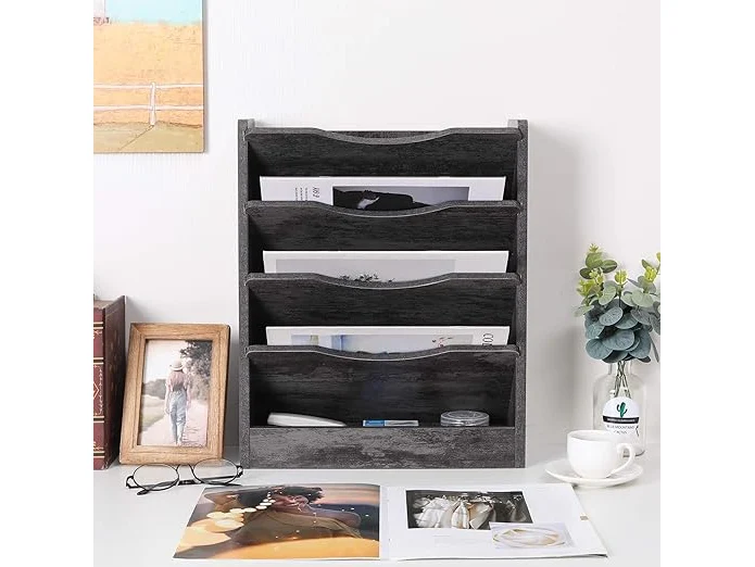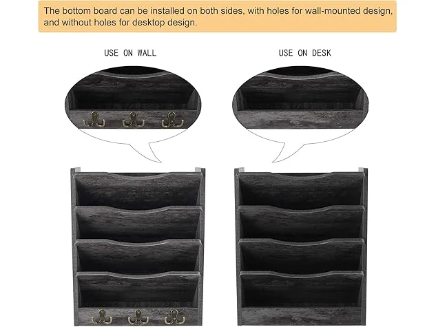 Ongeopend, PAG Documentenmap met 5 verdiepingen van hout met 6 haken,Totaal 5 niveaus, sleufafstand (inch): 9,5 x 7,5 x 7,5 cm, donkergrijs, B08H53572F