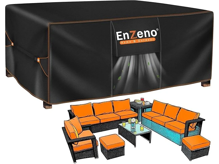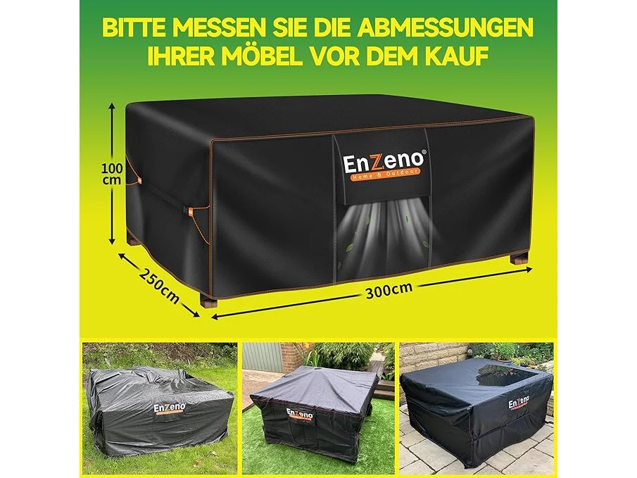 Ongebruikt,volledig, originele verpakking ontbreekt,ok, Enzeno Afdekking voor tuinmeubelen, waterdicht, 300 x 250 x 100 cm, 420D Oxford loungemeubelafdekking, afdekzeil, tuinmeubelen, winterbestendig, beschermhoes voor tuinmeubelen voor tafels en stoelen,B0CDBDFLFS