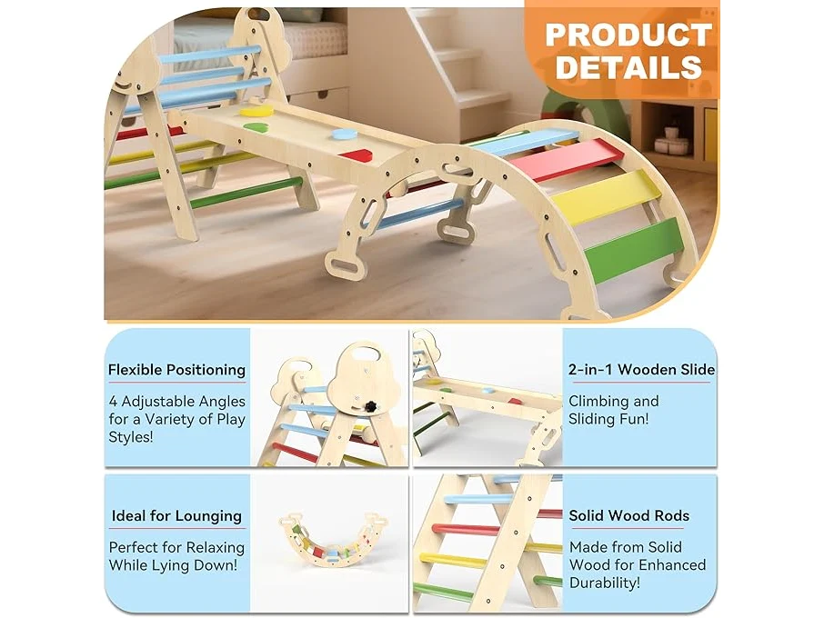 Ongebruikt, volledig, ok, Montessori Indoor speelset: 7-in-1 klimrek met glijbaan, boog en mat voor peuters en kinderen (1-3 jaar), B0F83XHY9H
