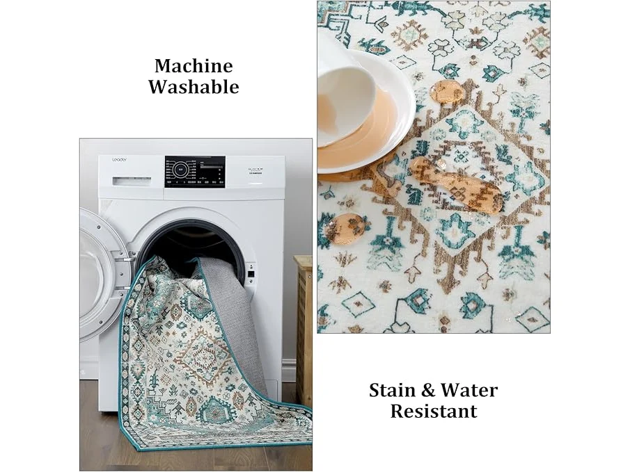 Ongeopend, LuxFocus Machine wasbaar tapijt, 80 x 150 cm, traditioneel Oosters tapijt, antislip, laagpolig, woonkamer, vloermat, keukentapijt met boho-bedrukt patroon, voor binnen, mat, groen , B0C89JN4P4