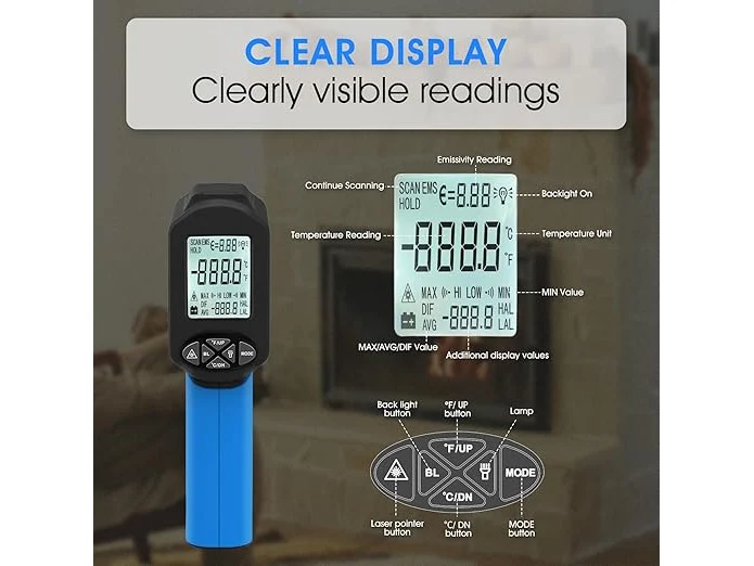 Ongeopend, Infrarood thermometer industrieel temperatuurpistool, D: S=30:1 contactloze infrarood thermometer, -50~1880 ℃ IR Temp Gun voor HVAC oven pizza oven, IR-pyrometer GR-1880, B0BN7G2CG9
