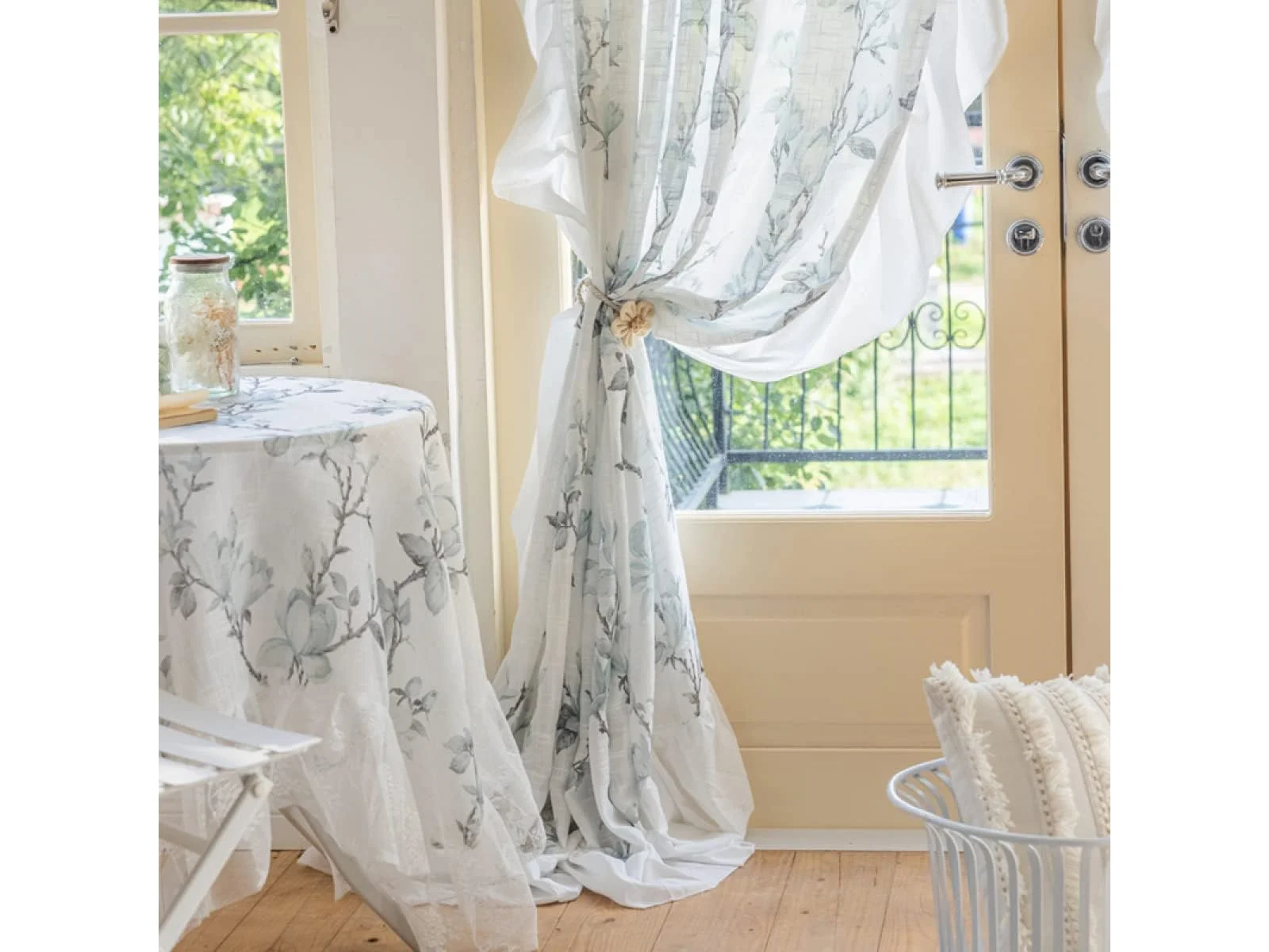 Ongeopend, Freyamy Transparante gordijnen, set van 2 voile-gordijnen, blauw, bloemen, gordijnen met ruches, doorschijnend, r, raamdecoratie, gordijnen, B132xH213 B0C3R6PQ9H