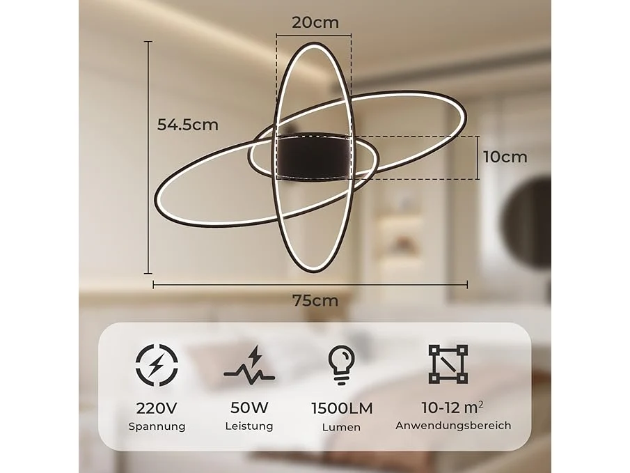 Ongeopend, homwarmy Led-plafondlamp, plafondlampen met afstandsbediening, 50 W, zwart, moderne plafondlamp voor woonkamer, 54 cm, keuken, plafondlamp, dimbaar B0DBQFWLJL