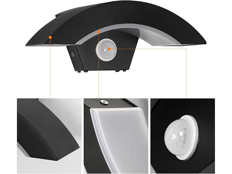 Ongebruikt, getest en werkend, volledig, ok, Comely 2-delige wandlamp voor buitenmuur LED met bewegingssensor, 12 W moderne warmlichtlamp 3000 K, IP65 waterdichte wandlamp, B0DK6WWK2L
