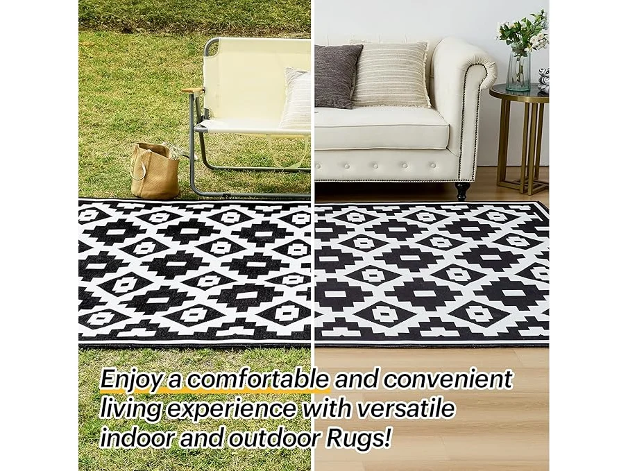 Ongeopend, OMERAI Outdoor tapijt , wasbaar, wasbaar anti-vlek en UV-resistent 150X240CM Zwart-wit, B0CKVFP3D1