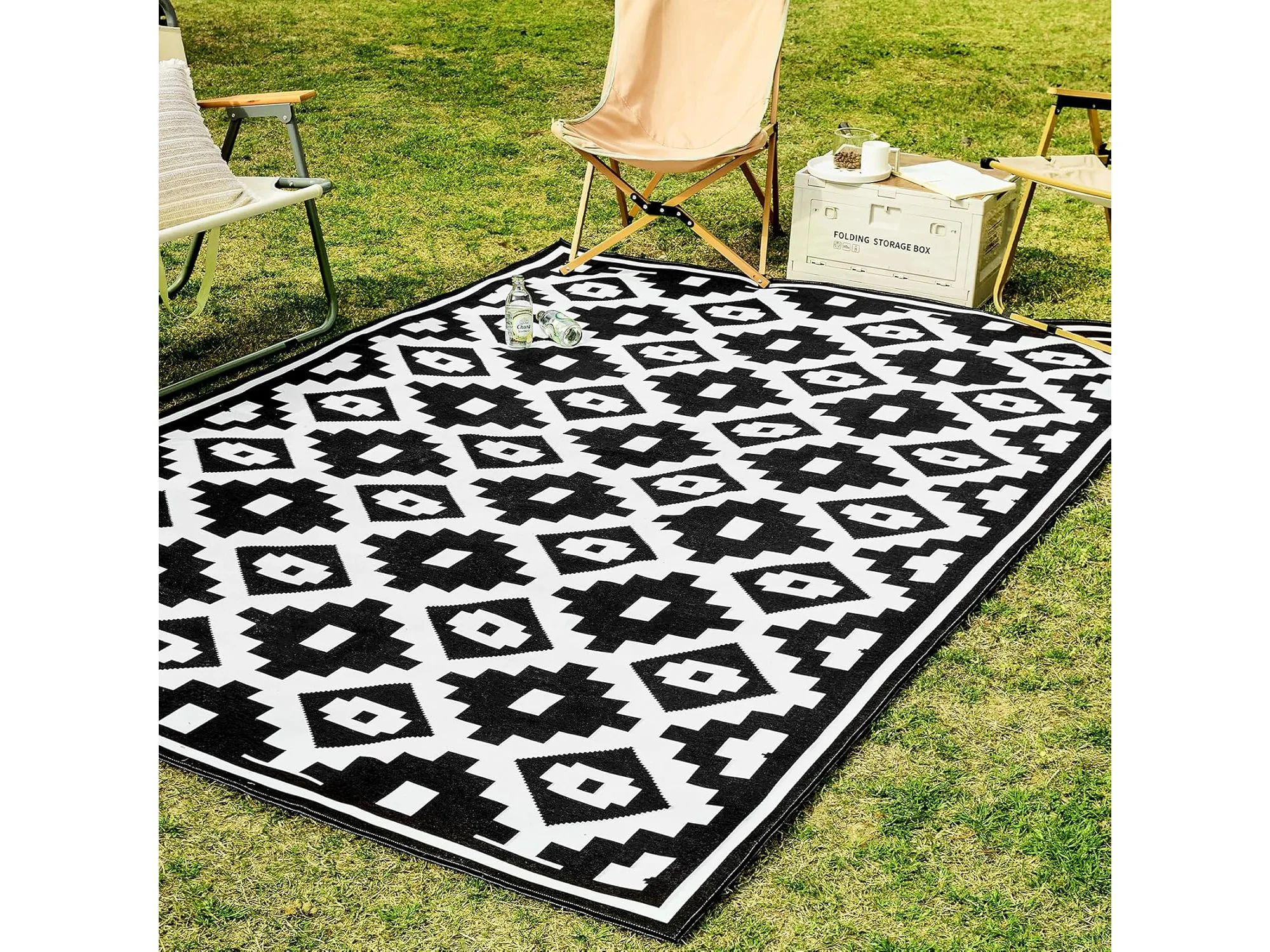 Ongeopend, OMERAI Outdoor tapijt , wasbaar, wasbaar anti-vlek en UV-resistent 150X240CM Zwart-wit, B0CKVFP3D1