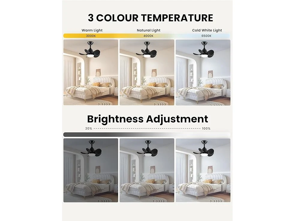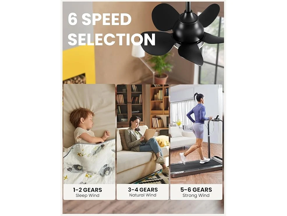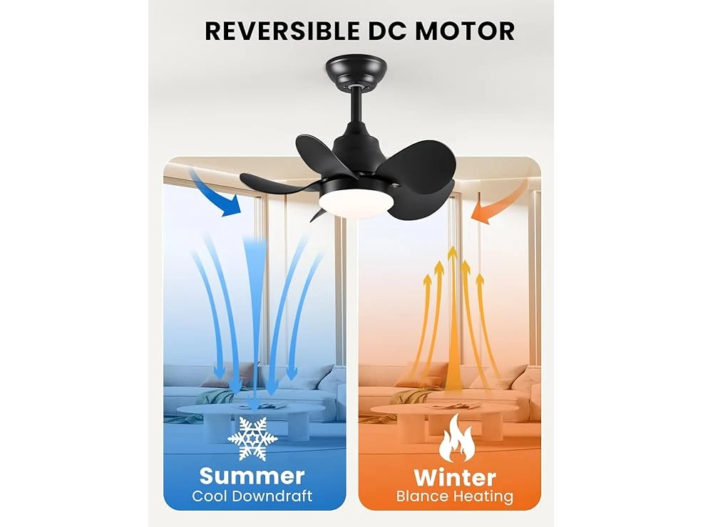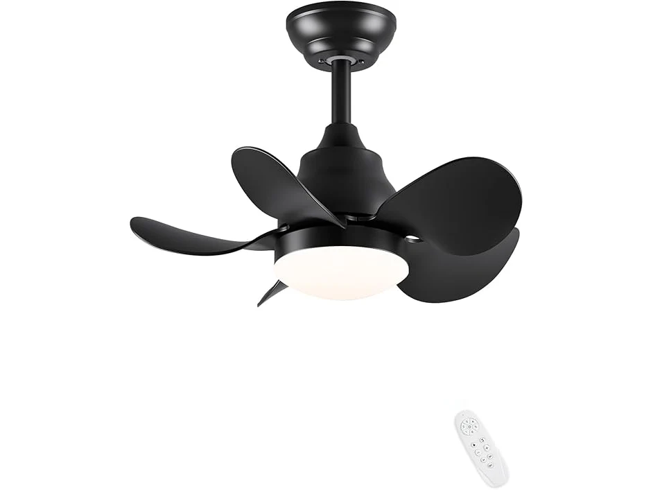 Ongeopend, CJOY 558 mm plafondventilator, stil, met licht, plafondventilator met afstandsbediening, 5 bladen, omkeerbaar, DC, dimbaar, 6 snelheden, plafondlamp, ventilator, zwart [Energieklasse F] B0CQNZSR8K