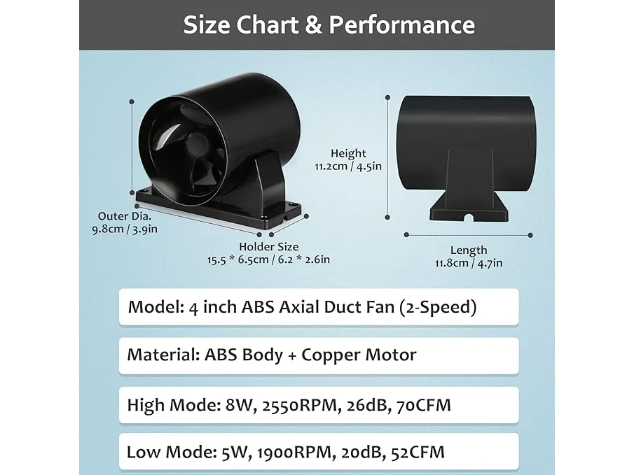 Ongeopend, ok, Hose Vary 100 mm axiale luchtafzuiger, lichte afzuigventilator van ABS-kunststof, 2 snelheden, EU-kabel, afneembare sokkel voor doe-het-zelf ventilatieproject, B0BJP5K7V3