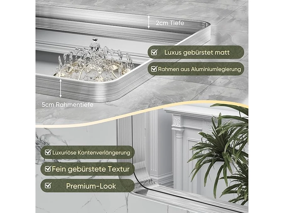 Ongeopend, antok Decoratieve wandspiegel, zilver, 60 x 80 cm, rechthoekige spiegel, wandspiegel met metalen frame, B0CSFBGBNC