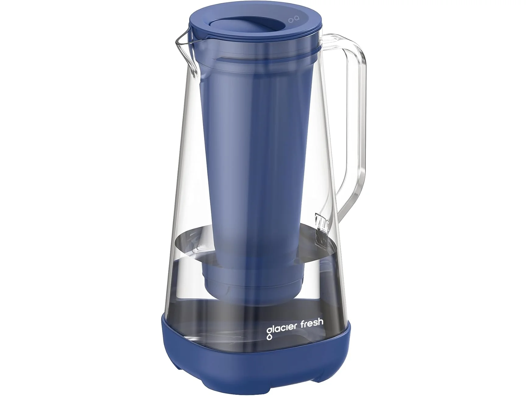 Ongeopend, GLACIER FRESH Glas Waterfilter-kan| 3 L | 1x Aktivkohle + 1x Ultrafiltration Filter | Reduziert Chlor, Fluorid, Kalkablagerungen, Schwermetalle wie Blei, Kupfer | Blau, B0CMHRVC85