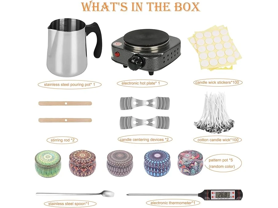 Ongeopend, Whemyreat Smeltpot voor kaarsen, kaarsenwassmelter, kaarsenmaakset, inclusief smeltpot, wassmelter, verwarmingsplaat, vierkante garde, lontstickers, kaarslonten , B0BNVN23LC