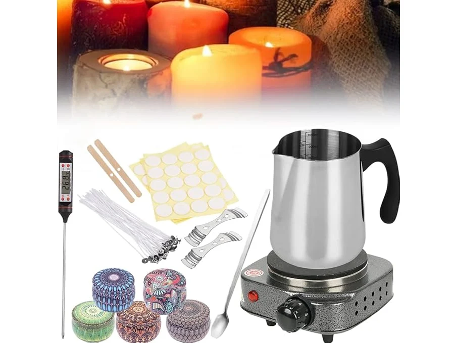 Ongeopend, Whemyreat Smeltpot voor kaarsen, kaarsenwassmelter, kaarsenmaakset, inclusief smeltpot, wassmelter, verwarmingsplaat, vierkante garde, lontstickers, kaarslonten , B0BNVN23LC