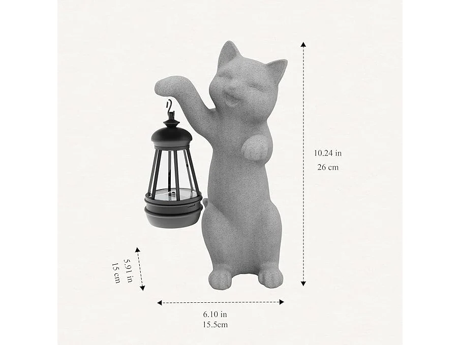 Ongeopend, mikilov Hars Beeld Kat met Lantaarn op zonne-energie (Hand L 40cm decoratie kat olifantgrijs, B0DQNB994C