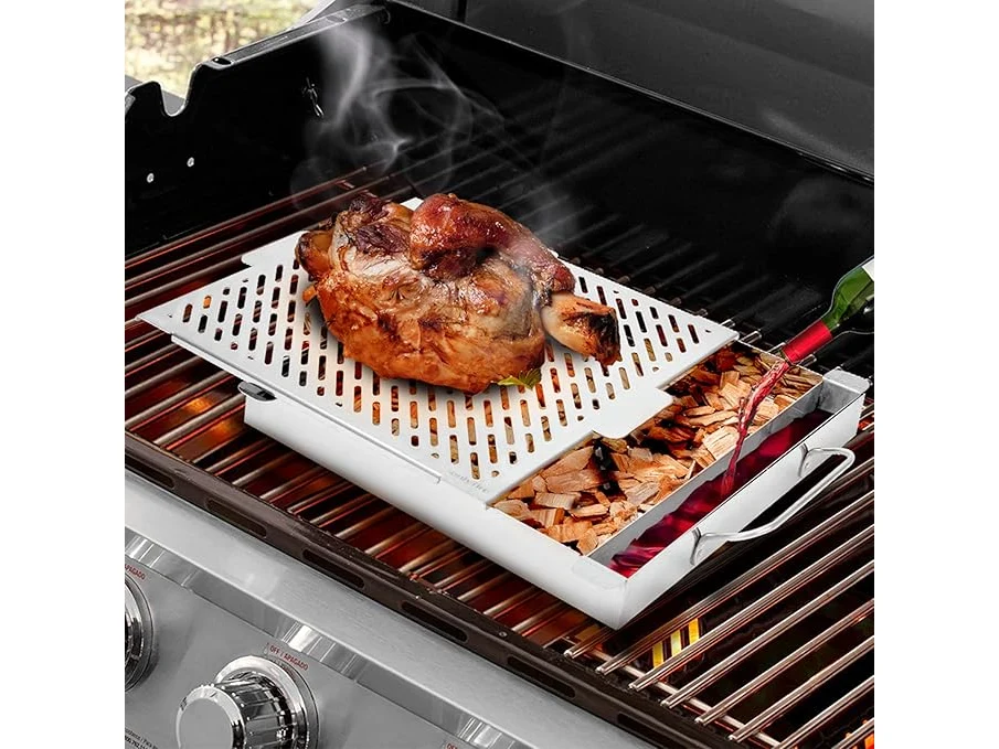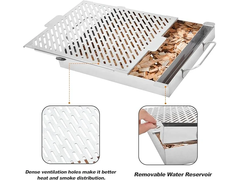 Ongeopende verpakking, ok, Onlyfire BBQ-rookbox voor houtsnippers, 35 * 30 cm barbecue-rookplatform met waterreservoir en handgrepen voor gasgrill & houtskoolgrill vlees en vis roken, B08F7B2PQV