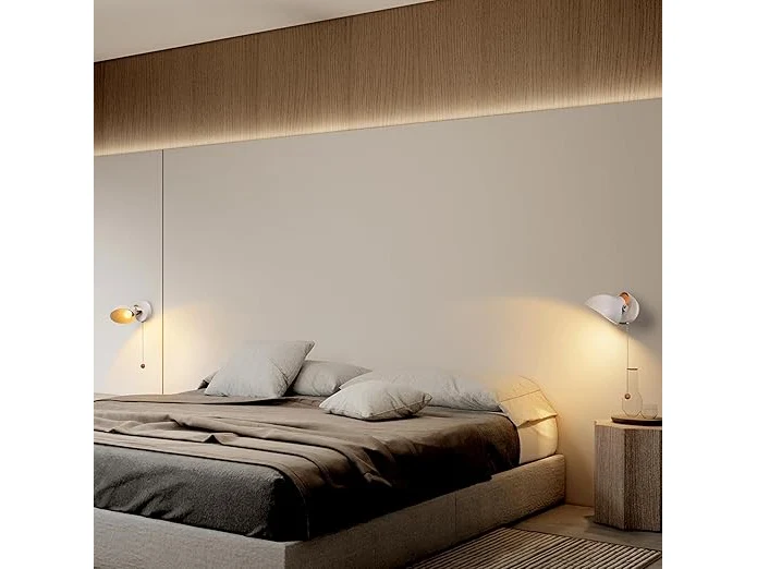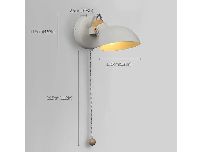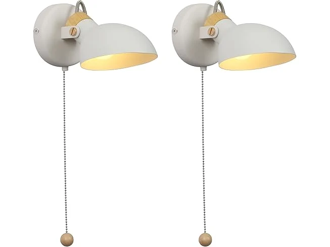 Ongeopend, Aisilan Set van 2 wandlampen met trekschakelaar, wit, E14, vintage wandlamp met schakelaar, draaibaar, hout en metaal, retro industriële wandlamp met gloeilamp, B0BJDLWTPT
