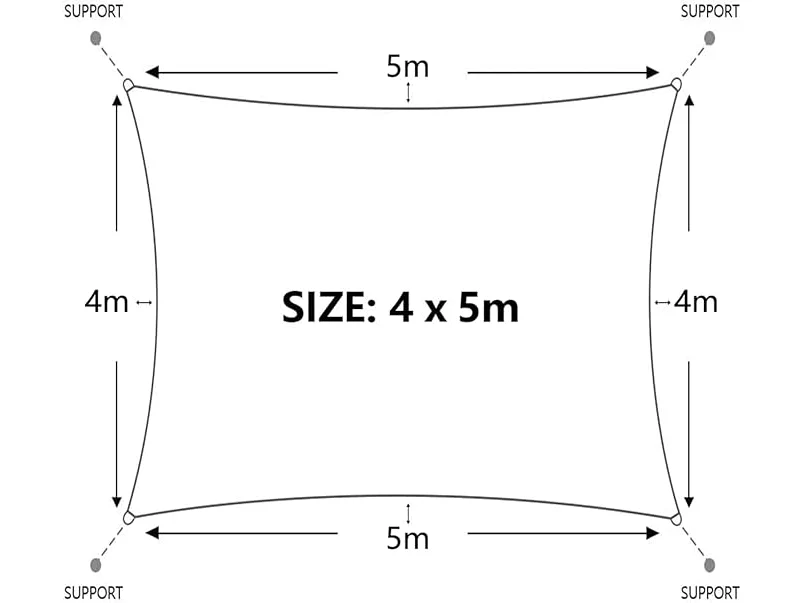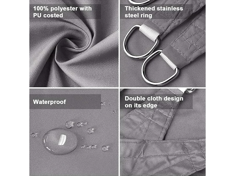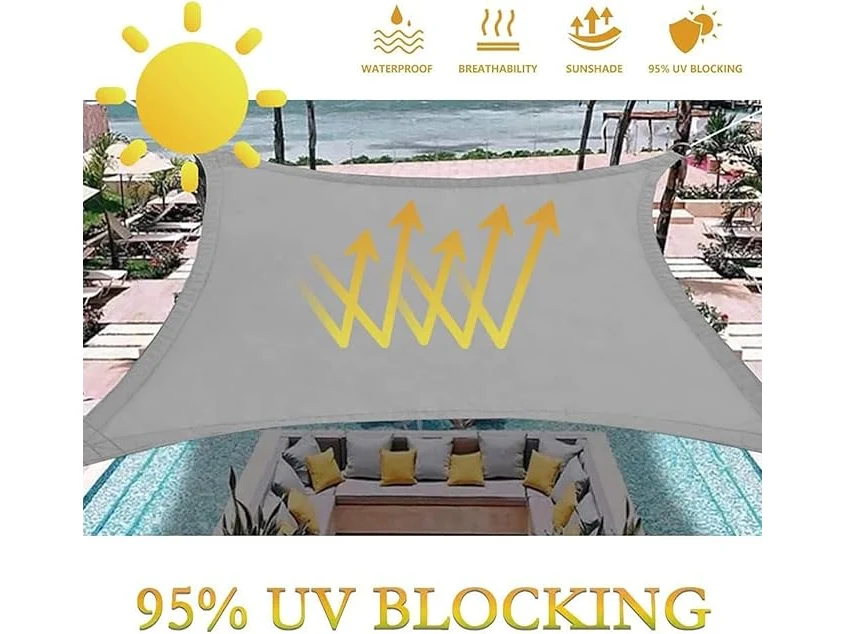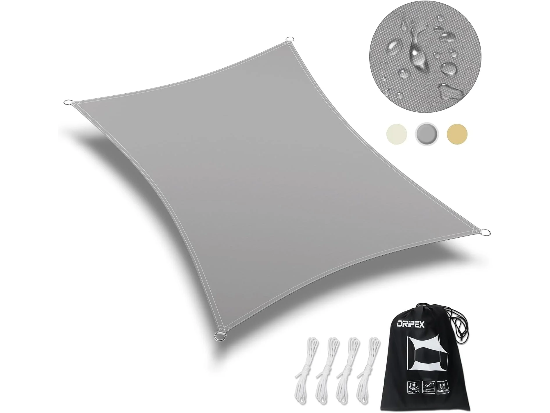 Ongebruikt, ok, Dripex Zonnezeil, zonwering, set inclusief bevestigingskoorden, rechthoekig, waterafstotend, polyester, geïmpregneerd, 95% uv-bescherming, windbescherming, weerbestendig, 4 x 5 m, voor balkon, tuin, terras, grijs, B09SV43H7L