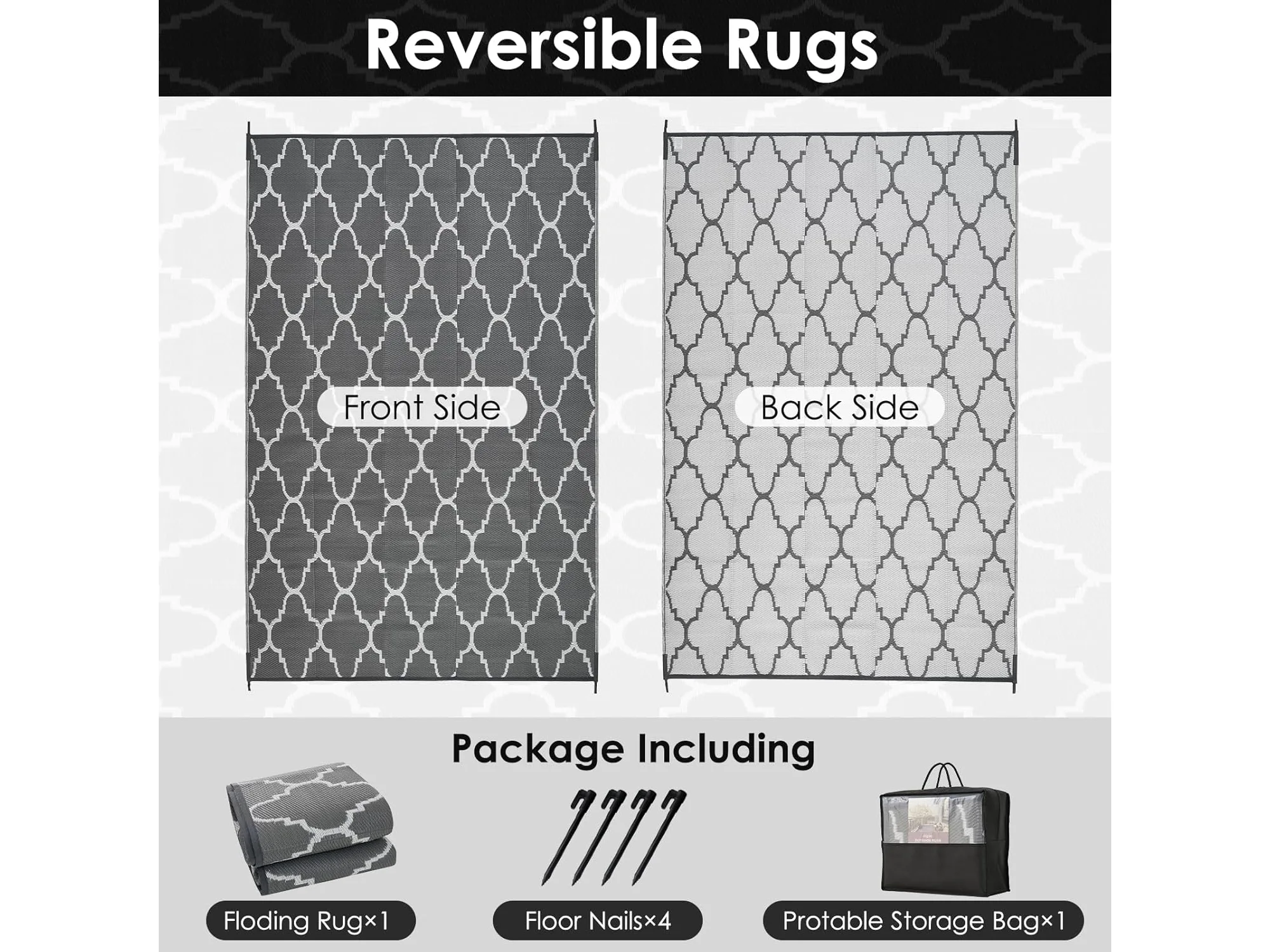 OIGAE Outdoormat, waterdicht, omkeerbaar, vuilafstotend, licht, picknickdeken van geweven kunststof, strandmat voor camper, camping (grijs, 150 x 240 cm)