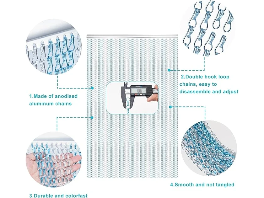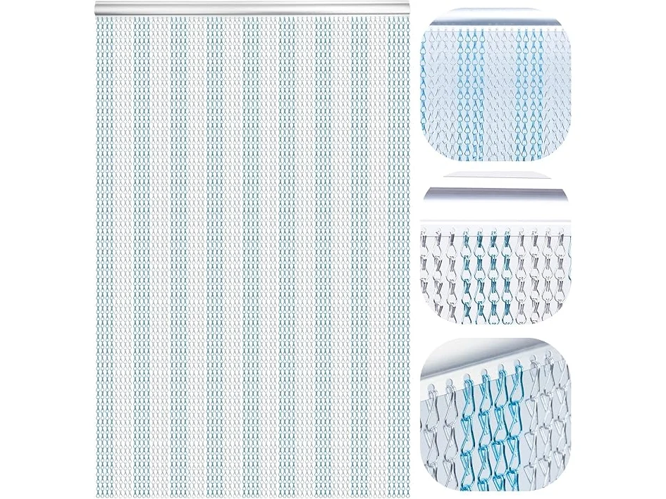 Gebruikssporen, volledig, ok, Lymmiytc Kettinggordijn Deurschermen 90 x 200cm Aluminium Kettinggordijn voor Deuropeningen Decoratie, Metalen Vliegenhorren Insectengordijnen Ongediertebestrijding (Blauw & Zilver), B09QBXDQQH